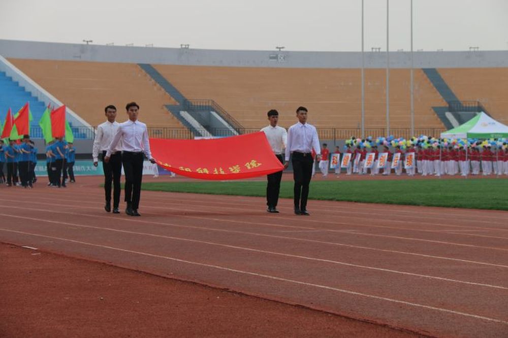 9月26日,我校第一届田径运动会在3号体育场隆重举行。校领导杨化仁、王一女、王喜魁、张丽影、杨春光莅临现场,教务处、学生处和各系部主要负责同志在主席台前就座,近七千余名师生到场共同参与了这一学校运动盛事。