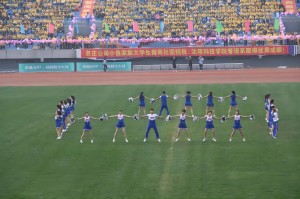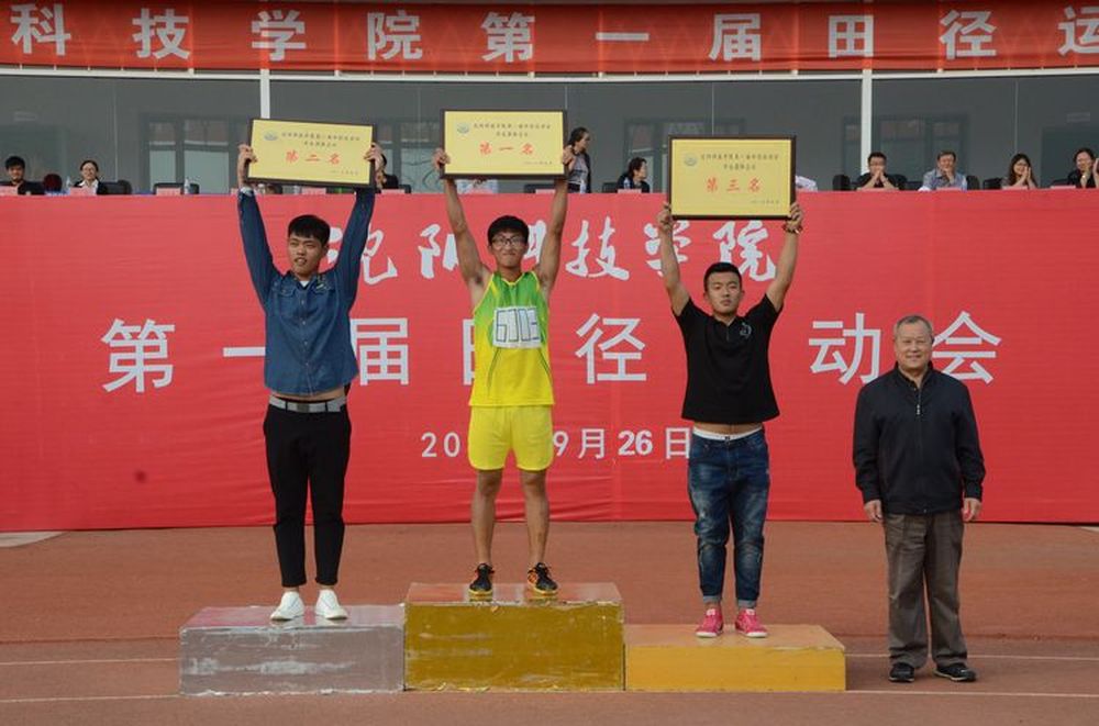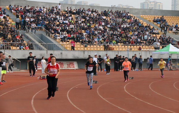 一声清脆的发令枪声响彻体育场上空后,我校第一届田径运动会各项赛事正式拉开战幕。竞技场上,来自不同部门的师生运动员奋勇争先、顽强拼搏,展示出更快、更高、更强的奥林匹克精神,用自己的毅力和汗水创造了一项又一项优异成绩;裁判员严谨认真、文明裁判,确保赛事各项成绩数据精准而真实;全体工作人员兢兢业业、尽职尽责,为大会赛程有序推进提供了坚实保障;数千名观众的欢呼呐喊声此起彼伏,整个赛场无时不充满了无限的激情与碰撞。在一天的时间里,12支代表队的834名运动员参加了43个项目的角逐。虽然天气在秋雨过后略显微凉,但大家参与运动的热情却丝毫不减。在激烈的比赛间隙,管理系、经济系还组织学生进行了精彩的啦啦操和威武的搏击拳表演,为大会助威。