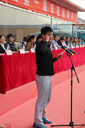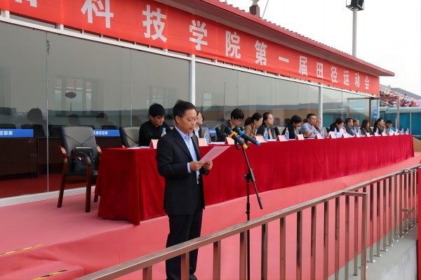 在全体师生高唱《义勇军进行曲》过后,副院长王喜魁致开幕词。他指出,我校第一届田径运动会的举办,是学校在圆满完成转设更名工作后,对全校体育文化发展和师生精神风貌的一次大检阅,也是对全体运动员身体素质、协作精神、竞技水平的综合考验。他希望全体运动员发扬奥运精神,拼搏进取、奋发勇为,赛出道德风尚、赛出竞技水平、赛出个性风采、赛出团结友谊;希望大会工作人员、全体裁判员坚持公平公正、实事求是的评判原则,恪守比赛规程、尽职尽责、公正裁判、热情服务,为各项竞赛顺利进行营造良好的工作氛围,努力把本届运动会办成“文明、团结、和谐、友谊”的盛会!随后,运动员代表牟菲同学和总裁判长梁新鑫老师分别登上主席台宣誓,表达了顽强拼搏和公正裁决、确保赛会圆满成功的决心。