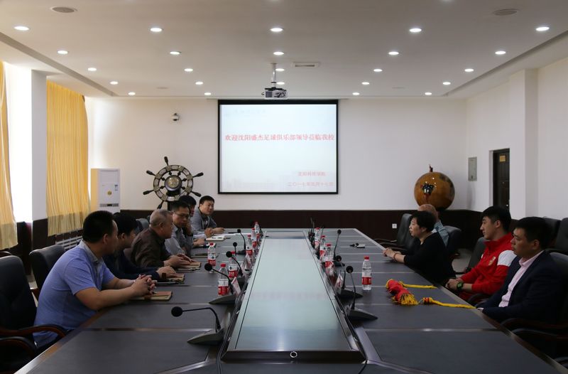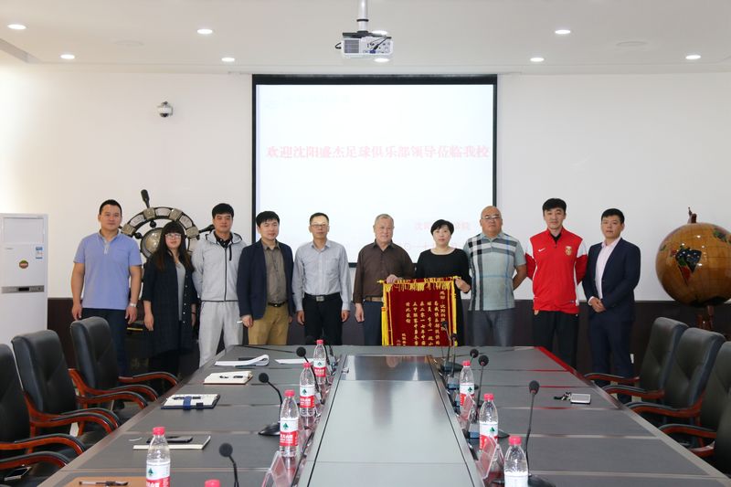 座谈会上,杨化仁校长对袁董事长一行的到来表示诚挚欢迎,并向客人全面介绍了我校当前发展建设和社会体育指导与管理专业人才培养的基本情况。杨校长指出,随着沈阳市致力于打造全国知名足球城市建设步伐的加快,希望双方能够以此次交流为契机,建立起宽广的合作办学机制,为职业足球俱乐部乃至全社会培养输送更多高水平的应用型足球人才。袁董事长衷心感谢了我校各位领导的热情招待,对学校在应用型人才培养、校园足球场馆建设投入等方面所做出的积极举措表示高度赞赏,并邀请我校共同为实现宽领域、深层次的足球人才联合培养搭建起坚实平台。随后,沈阳盛杰足球俱乐部领导向我校赠送了锦旗,双方还就室内五人制足球赛、俱乐部队伍建设等相关内容进行了深入探讨并合影留念。