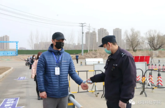 ↑↑↑工作人员负责布置警戒区域,并组织检查“学生”校园卡登记、测温枪体温检测。
