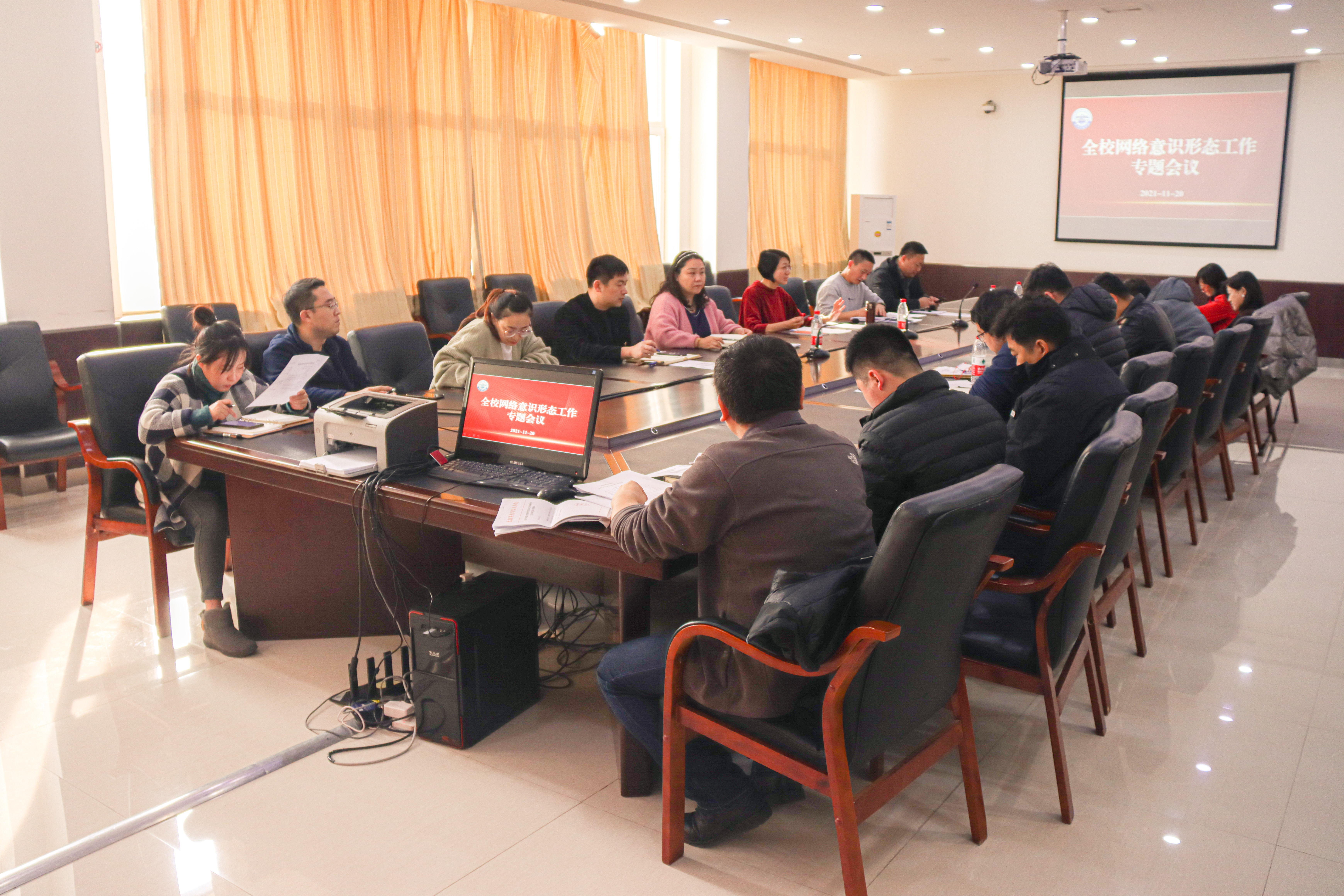 11月20日下午,学校在505会议室召开全校网络意识形态工作专题会议。党委书记助理李鲁宁出席会议并传达了上级有关精神。党委组织部、党委宣传统战部和各党总支(部)、各职能部门主要负责同志参加会议。