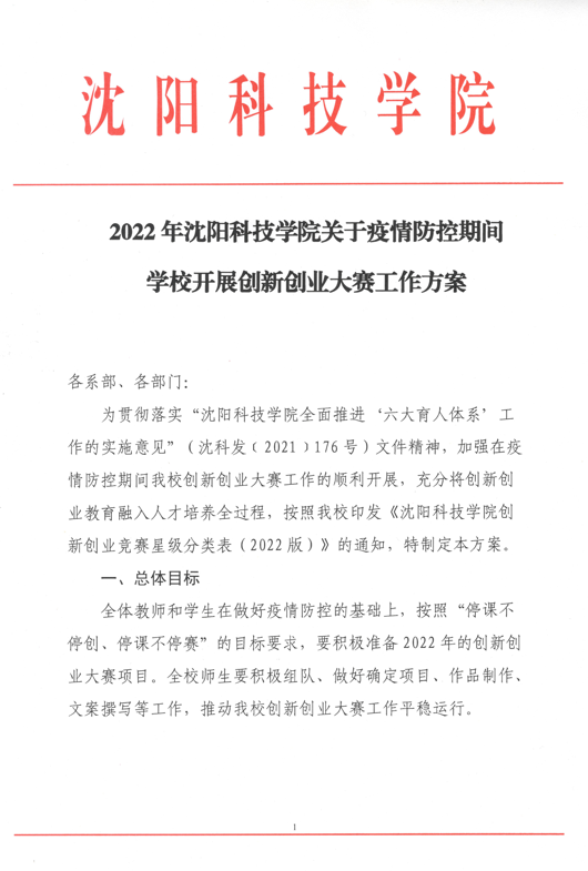 为贯彻落实《云博·(中国)手机网页版全面推进‘六大育人体系’工作的实施意见》(沈科发﹝2021﹞176号)文件精神,加强在疫情防控期间我校创新创业大赛工作的顺利开展,大学生创新创业教育中心起草制定了“关于疫情防控期间开展创新创业大赛的工作方案”,从总体目标、主要工作和措施、工作要求三方面着手,为疫情期间开展创新创业大赛指明方向。