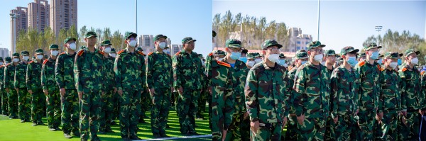 来自五湖四海的1600余名新生,迎着清晨的阳光,相聚在操场中央,