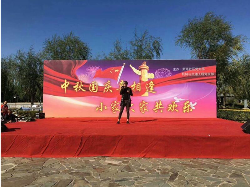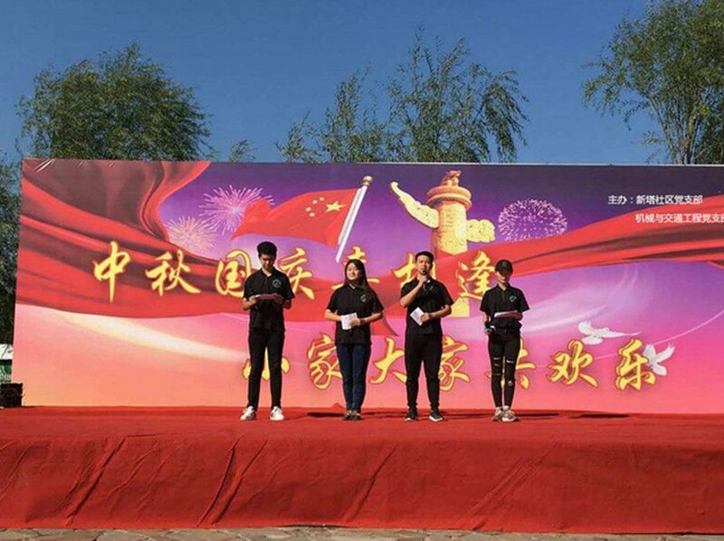 新塔社区党支部在白塔公园广场举办“中秋国庆喜相逢,小家大家共欢乐”主题联欢会,作为共建单位的机械与交通工程党支部,组织部门学生为社区的居民带来了精彩的开场舞《霍元甲》、歌曲《鸿雁》、诗朗诵《祖国颂》、小合唱《感恩的心》;社区幼儿园的小朋友带来了舞蹈《音乐城堡》;社区老年艺术团的管弦乐合奏《歌唱祖国》、男女生独唱等节目博得广大观众的阵阵掌声,使整个广场成了一片欢乐的海洋。