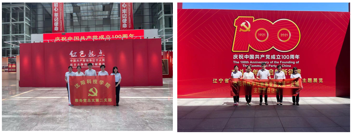 7月1日下午,教务党总支第二支部前往辽宁省档案馆、辽宁省图书馆和苏家屯区烈士陵园开展主题党日活动。辽宁省档案局正在进行“红色起点——中国共产党领导辽宁人民抗日斗争档案文献展览”。展览共分为5个主题单元,突出时代、地域和档案特色,精选近500份档案文献、历史图片、视频资料等作为展件,再现了辽宁地区党组织筚路蓝缕的发展历程,重温在中国共产党领导下,东北抗日烽火熊熊燃烧的革命岁月。辽宁省图书馆正在进行“庆祝中国共产党成立100周年主题展览”。展览以“奋斗百年路 启航新征程”为主题,精心设计了“奋斗完成新民主主义革命”、“奋斗进行社会主义革命和建设”、“奋斗推进社会主义革命和社会主义现代化建设”和“奋斗进入中国特色社会主义新时代”四个展区,通过文字和图片展板、实物展品以及场景、视频等多种形式手段,展示了在革命、建设和改革各个历史时期。参观结束后,面向鲜红的中国共产党党旗,广大党员重温了入党誓词,铿锵有力的宣誓声响彻大厅。最后,支部全体教师奔赴苏家屯区烈士陵园,祭扫烈士陵园。陵园设有烈士纪念碑、墓穴区、浮雕群及围墙等设施,共安葬363位烈士遗骨,在人民英雄永垂不朽烈士纪念碑前,大家列队向先烈默哀,一起缅怀为中国人民幸福而抛洒青春和热血的革命先烈。(根据教务党总支第二支部供稿修改  通讯员:田川)
