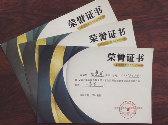 我校学生在全国大学生百科知识竞赛中喜获佳绩
