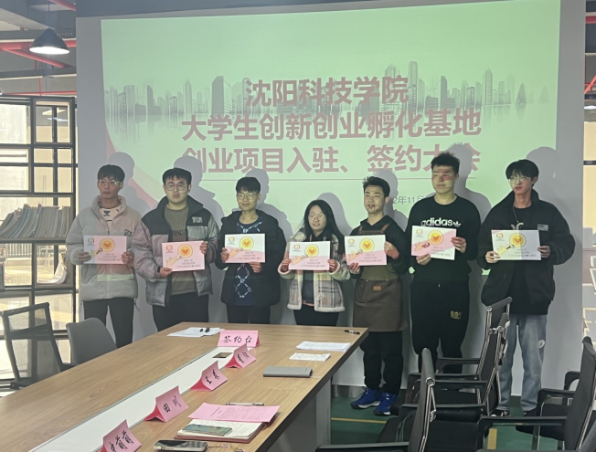 仪式中,大学生创新创业孵化基地负责人史萌萌老师分别与1999沈科创客咖啡、智慧语言股份有限公司、沈阳市沈科数模教学科技工作室、青创电商直播孵化基地、沈阳市浑南区致一净水技术有限公司、云广乒乓球俱乐部、沈阳浑南聚星环保建材有限公司等7家公司项目负责人签订《入驻协议书》、颁发基地入驻钥匙,并合影留念。最后,史萌萌老师介绍孵化基地基本情况及管理办法,希望入驻团队能够认真遵守相关规定,合法营业。