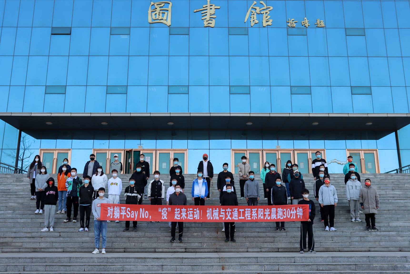 【党建】近日,机械与交通工程系党总支第一党支部开展“抗疫在身边,你我同运动”主题晨跑活动。党政办公室主任赵雷、第一支部书记周思文、2018级辅导员苏闯、学生党员、系团委学生干部及部分学生代表参加了晨跑活动。晨跑前,周老师为同学们详细讲解了热身和跑步的注意事项,随后,师生共同开始晨跑,同学们高声喊出“师生同心,齐力抗疫”的口号,振奋人心,响彻校园。(根据机械与交通工程系供稿修改 通讯员 : 周思文)