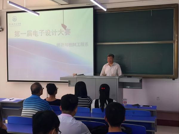 为进一步培养大学生的创新能力、实践能力和电子设计能力,全面提高学生的综合素质,营造良好的校园学习文化氛围,2017年6月14日下午,由信息与控制工程系承办的我校“2017年全国大学生电子设计大赛”校内选拔赛在第二教学楼226教室举行。信息系主任朱栋华及信息系全体教师担任评委。