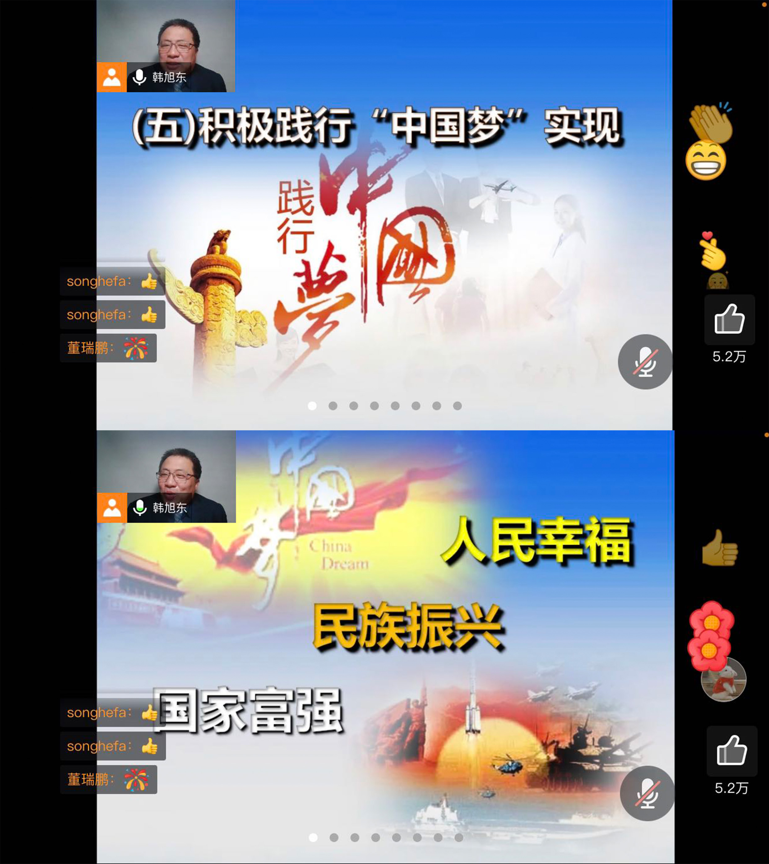 在报告中,韩旭东教授结合当前国家“一带一路”建设的战略构想,强调指出国家实力、群众智慧及人民团结协作对实现中华民族伟大复兴的重要意义。同时,他还进一步明确了新时代青年的责任与担当,勉励我校青年学子要将学业与国家现代化建设和国防事业结合起来,要“居安思危、奋发向上、实现梦想”,为中华民族伟大复兴的中国梦贡献自己的智慧和力量。