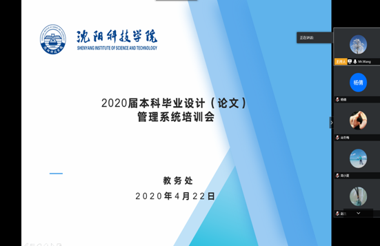 根据学校疫情防控期间工作要求,结合工作实际,教务处制定安排2020届本科毕业设计(论文)评阅和答辩等工作实施方案。鉴于今年启用维普毕业设计新的管理系统,以及毕业设计后续工作需借助毕业设计过程管理系统实现,为确保后期工作顺利开展,4月22日教务处通过腾讯会议召开2020届本科毕业设计(论文)管理系统培训网络会议,会议邀请维普毕业设计(论文)管理系统的技术工程师参加。培训会议针对毕业设计(论文)工作涉及到的论文相似性检测、评阅流程、答辩、论文存档等环节系统操作事宜,进行培训和交流。为毕业设计(论文)工作顺利开展做好准备。