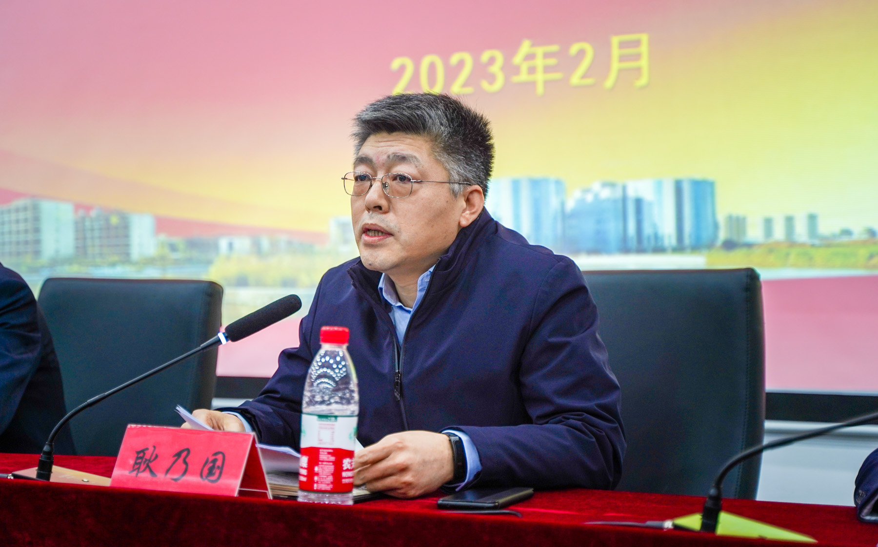 校长陈保东从扎实推进党建工作落实落细,顶层布局合格评估工作、完善学校顶层设计,加强教学过程管理、全面提升人才培养质量,创新学生工作新局面、促进学生全面健康成长,全面优化人才引进和教师培养机制,产教协同育人工作,创新创业教育工作,基础建设及各类保障工作,统筹做好疫情防控工作等九个方面,全面回顾了2022年取得的成绩及工作完成情况。同时,对接下来迎接本科合格评估及学校工作进行详细部署,2023年学校党政工作要点:一是深入学习贯彻习近平新时代中国特色社会主义思想和党的二十大精神,进一步推进思想政治工作。二是以建设学校高质量体系为目标,做好治理结构建设工作。三是进一步明确学校办学定位、办学理念、发展战略等学校发展顶层设计工作。四是完善内部管理制度建设。五是全面加强基层党组织建设。六是持续开展2023年本科教学改革项目建设工作。七是实施教学质量自评估。八是持续加强课程和课程思政建设。九是继续开展2023年磨课工作。十是强化教师培养,大力提升科研及实验设备的质量和投入。十一是深化校企合作。十二是依托集团产业优势,建设产业研究院、现代产业学院。十三是加大人才引进力度,优化师资力量。十四是组织开展预评估工作,做好合格评估支撑材料组建和自评估报告质量提升工作,做好合格评估联络员队伍和工作队伍的建设。十五是以“六大育人体系”要求为引领,持续推进“两站”、“五项工程”工作开花结果。十六是开展丰富多彩的学生活动及扎实做好招生和就业工作。十七是高标准高质量推进基础设施的建设。陈校长最后强调在集团的支持下、学校领导班子的带领下希望大家齐心协力,打赢这场教学工作合格评估攻坚战。
