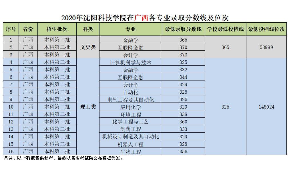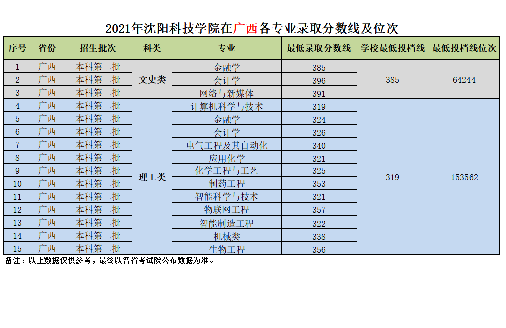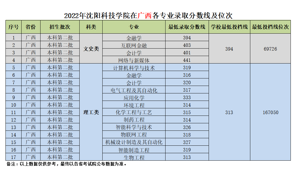 我校在广西壮族自治区近三年各专业录取分数线及位次