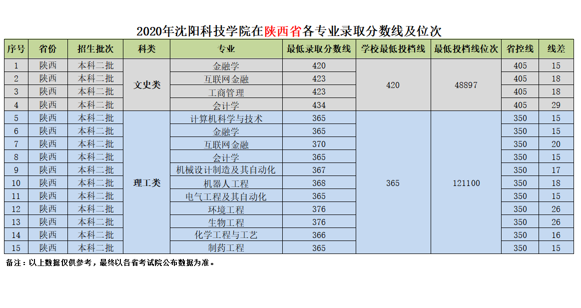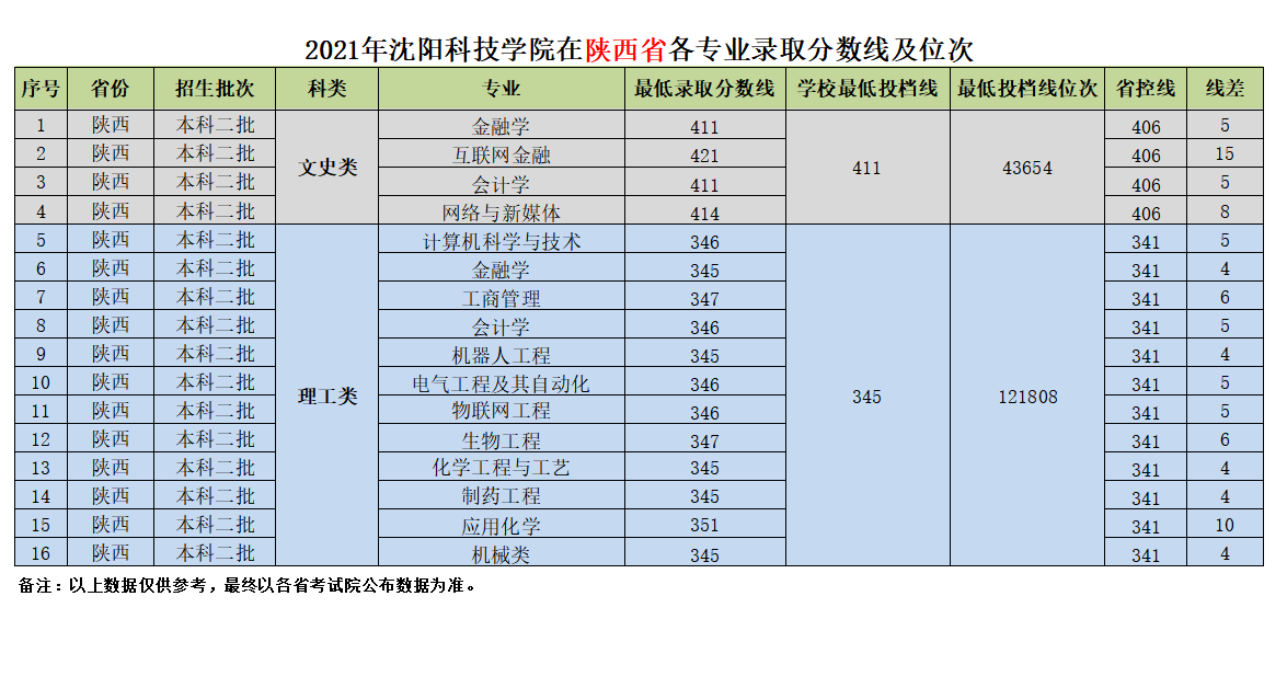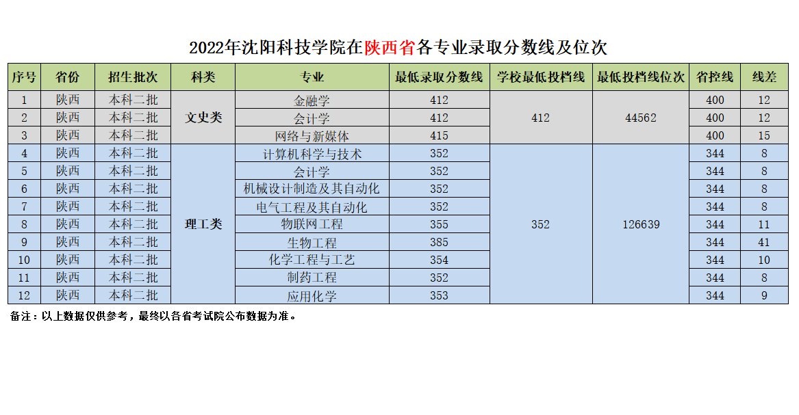我校在陕西省近三年各专业录取分数线及位次