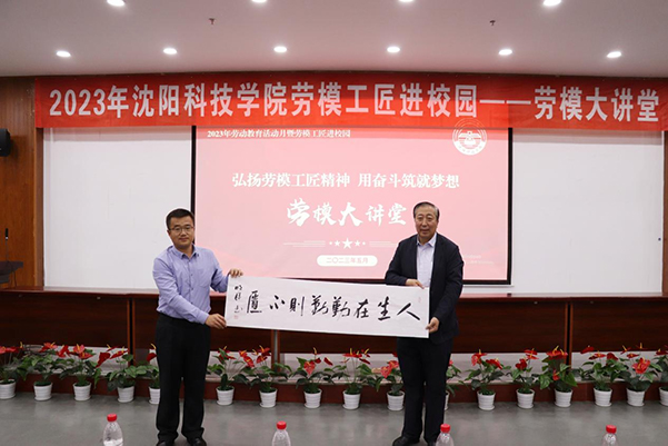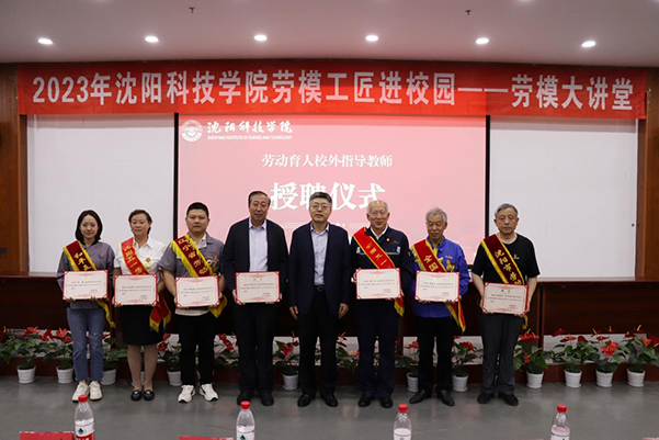 校党委书记耿乃国,纪委书记、副校长高洪震,学生处处长何大伟及各系学生工作副主任、部分辅导员教师出席本次活动;沈工中心融媒体工作部部长王欣欣,工作人员高小芳、游琳莅临现场;杨东文、苏广林、刘同霞、师俊威、杨建华、赵振金、赵越7位道德模范、劳动模范走进大讲堂与同学们见面,全国劳动模范杨建华、沈阳市劳动模范赵振金用自己的工作经历和先进事迹为沈科师生献上一堂生动的劳动教育课。