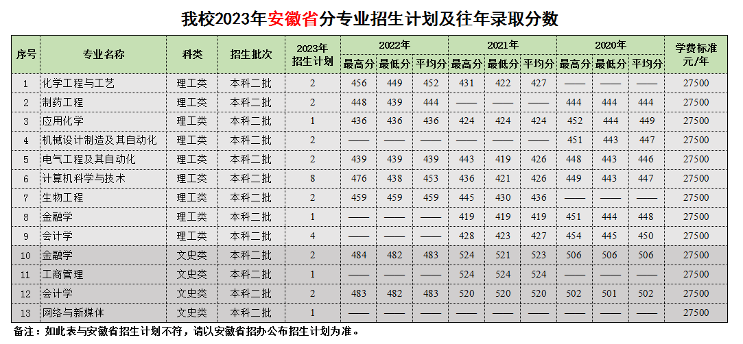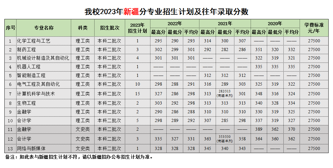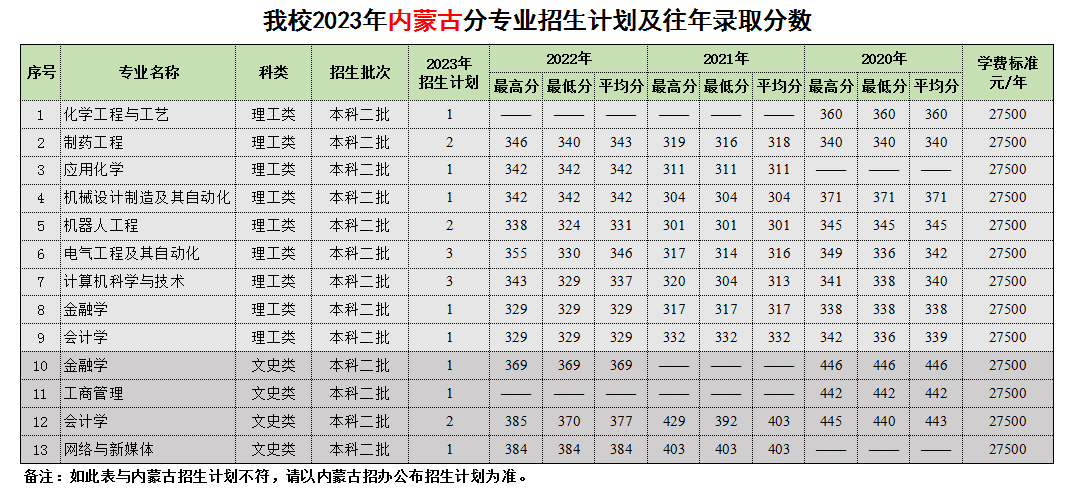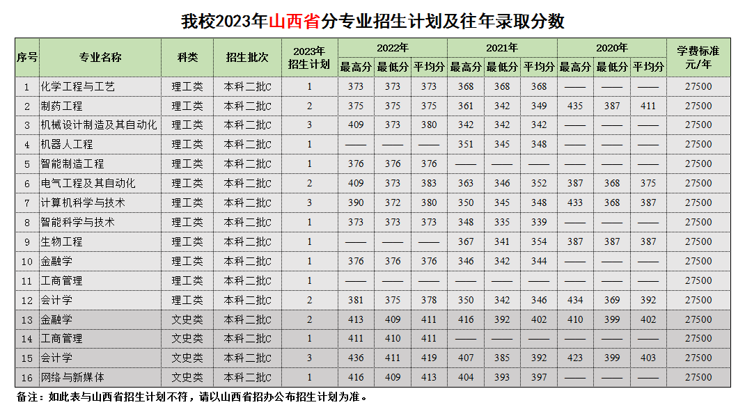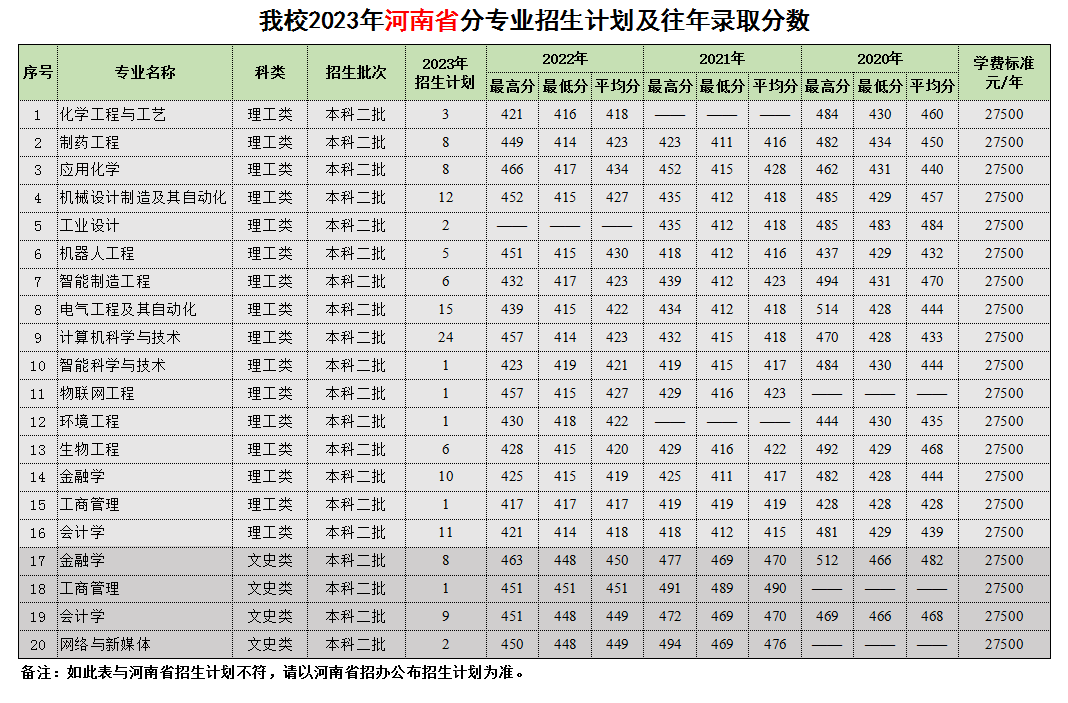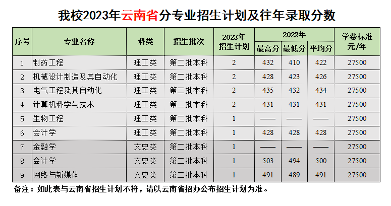 云博·(中国)手机网页版2023年分省分专业招生计划及往年录取分数