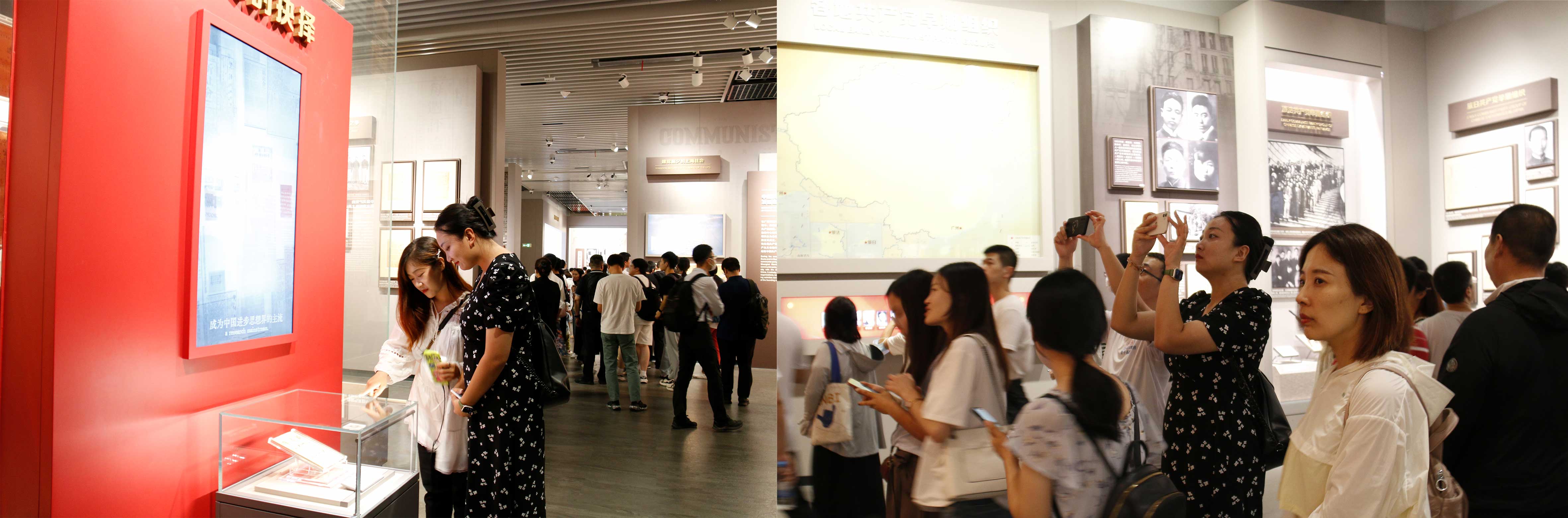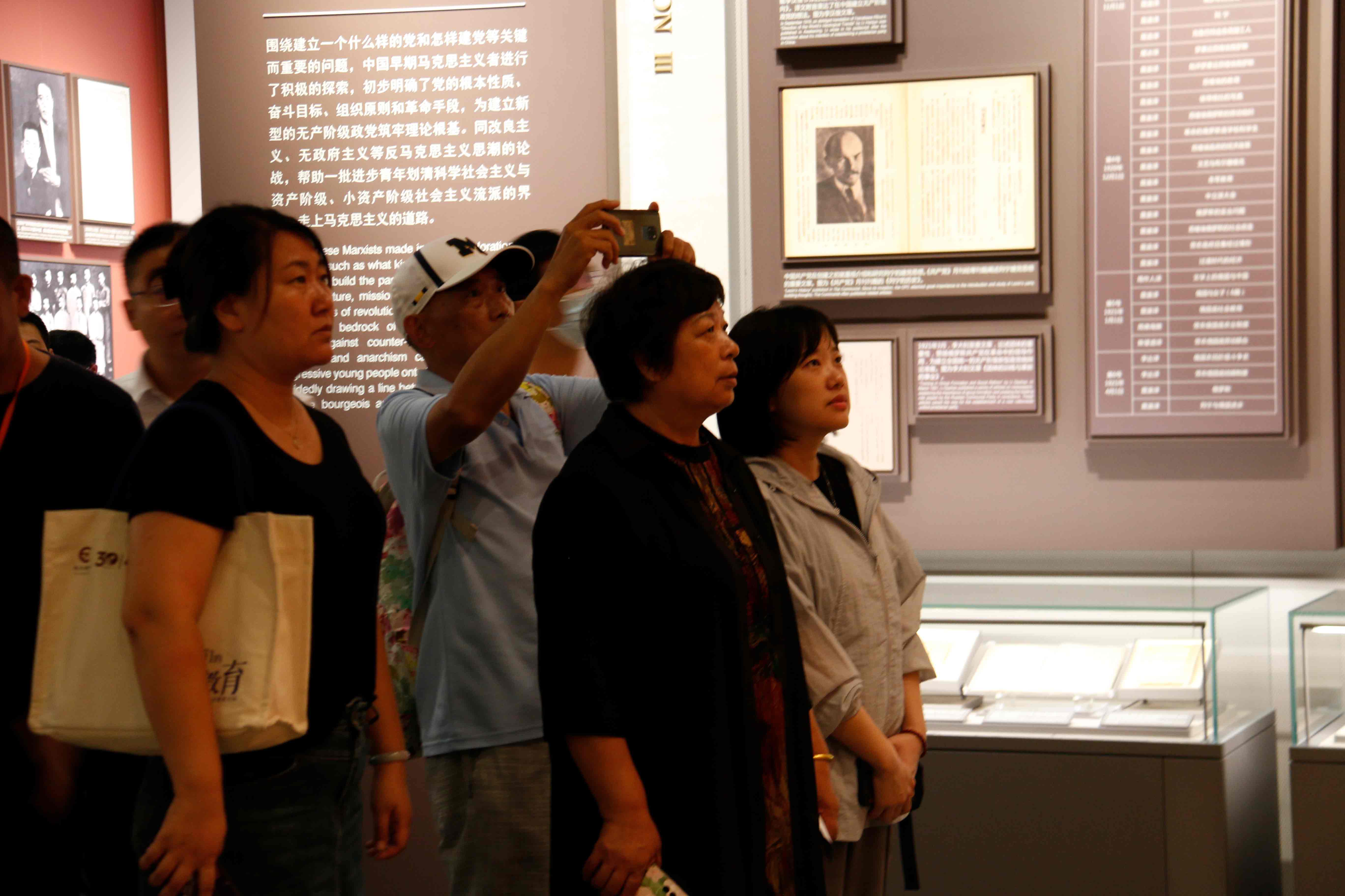 在中共一大会址纪念馆里,全体学员瞻仰了中共一大代表群像浮雕,依次参观了“历史选择伟大起点”“前仆后继救亡图存”“民众觉醒主义抉择”“早期组织星火初燃”“开天辟地日出东方”“砥砺前行光辉历程”和“不忘初心、牢记使命、永远奋斗”等7个展区。通过铭刻着历史印记的文物实物、真实生动的还原实景、内容详实的图片图表,展现了中国共产党的历史与故事。经过各个板块的学习以及在讲解员的耐心指引下,大家深切感受信仰力量,用心体悟思想伟力。