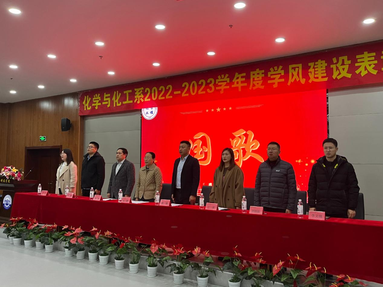 为树立学习榜样,营造良好学习氛围,11月21日下午,化学与化工系举行了“青春力量 优秀领航”2022-2023学年度学风建设表彰大会,对在学风建设中表现突出的先进典型和优秀代表进行表彰。化学与化工系领导班子成员、相关教研室主任和各年级辅导员出席了表彰大会。大会由学生会执行主席曹洋主持。