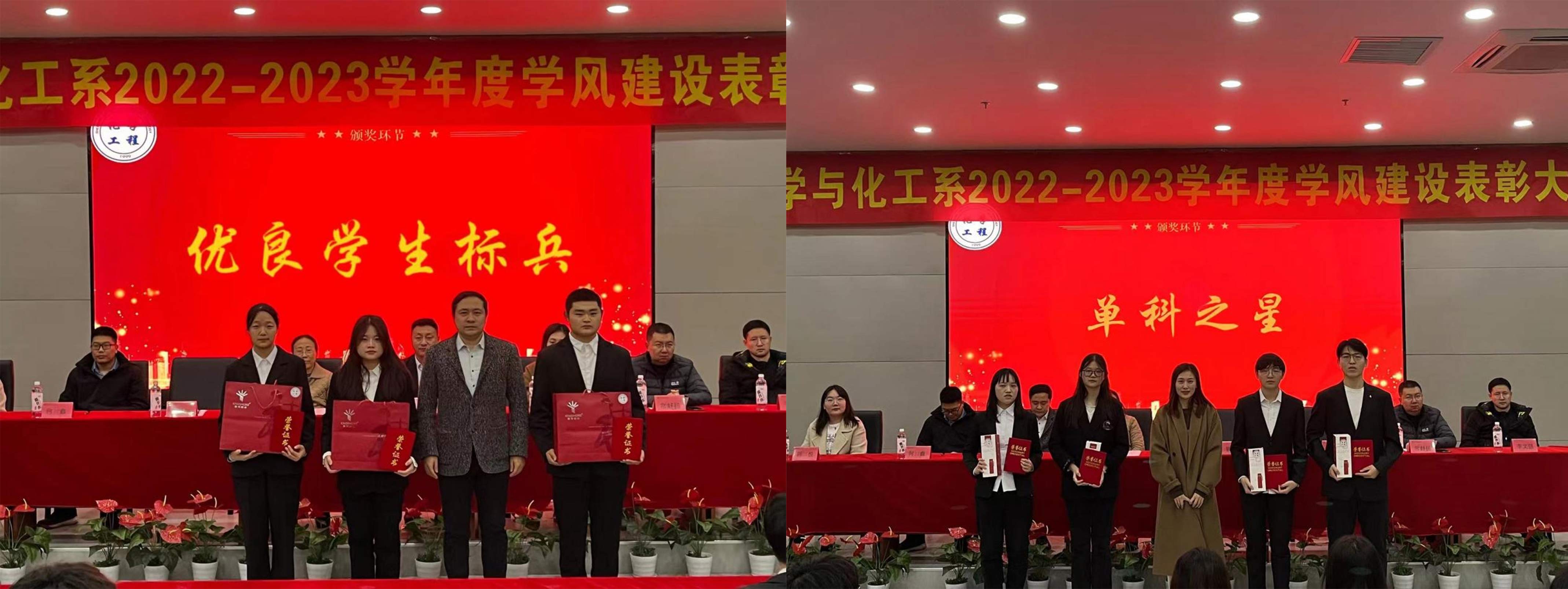 大会开始,系部主任吴静教授、党总支书记都颖宣读了《云博·(中国)手机网页版化学与化工系关于表彰学风建设先进集体和个人的表彰决定》。在热烈的掌声中,系部领导依次为获奖的6个班集体和70名受表彰个人颁发荣誉证书和纪念品。2022级杨东波同学作为学生代表发言,从生涯规划、明确目标和大学收获三个方面分享了自己的成长经验。