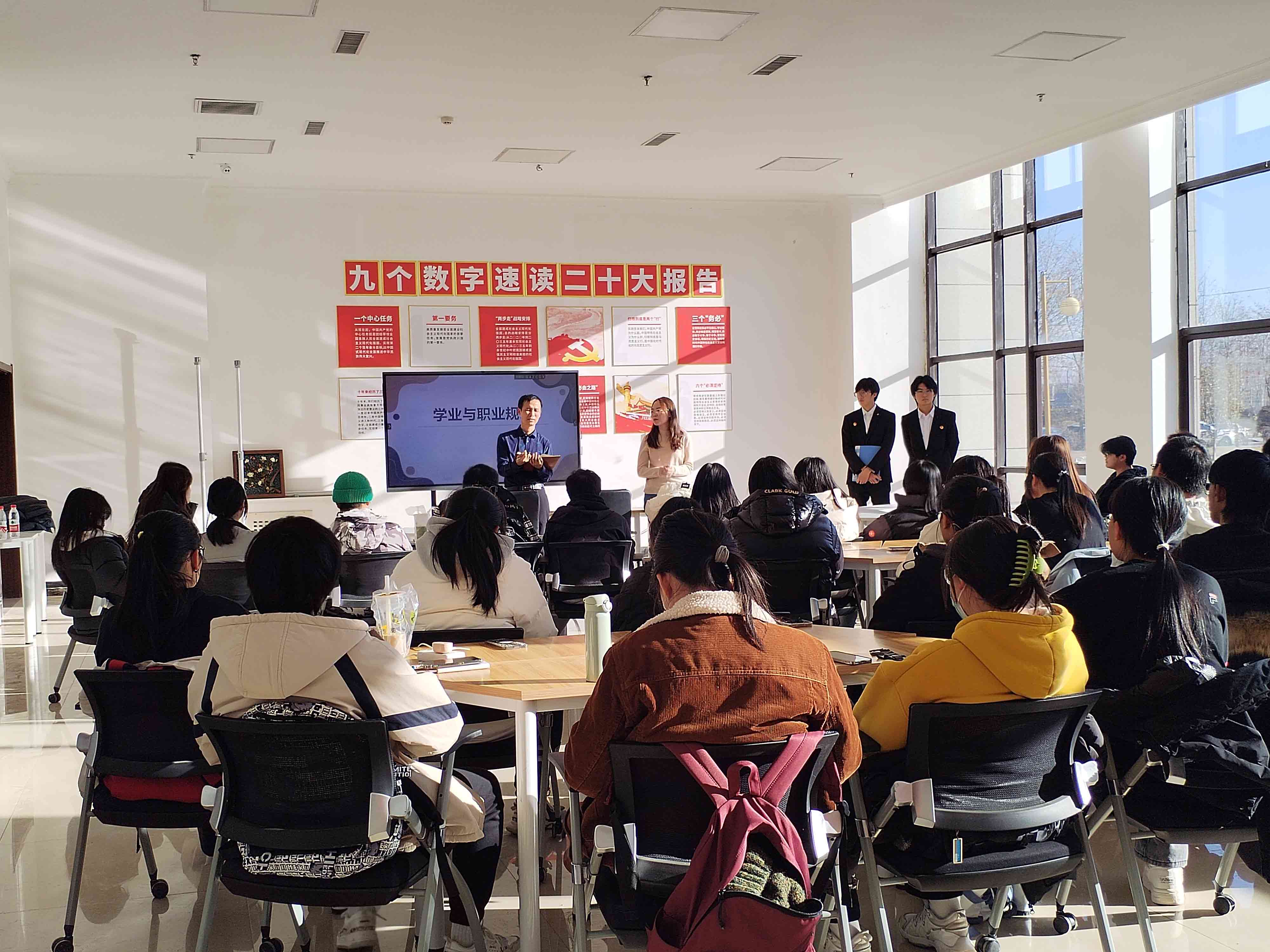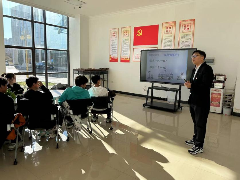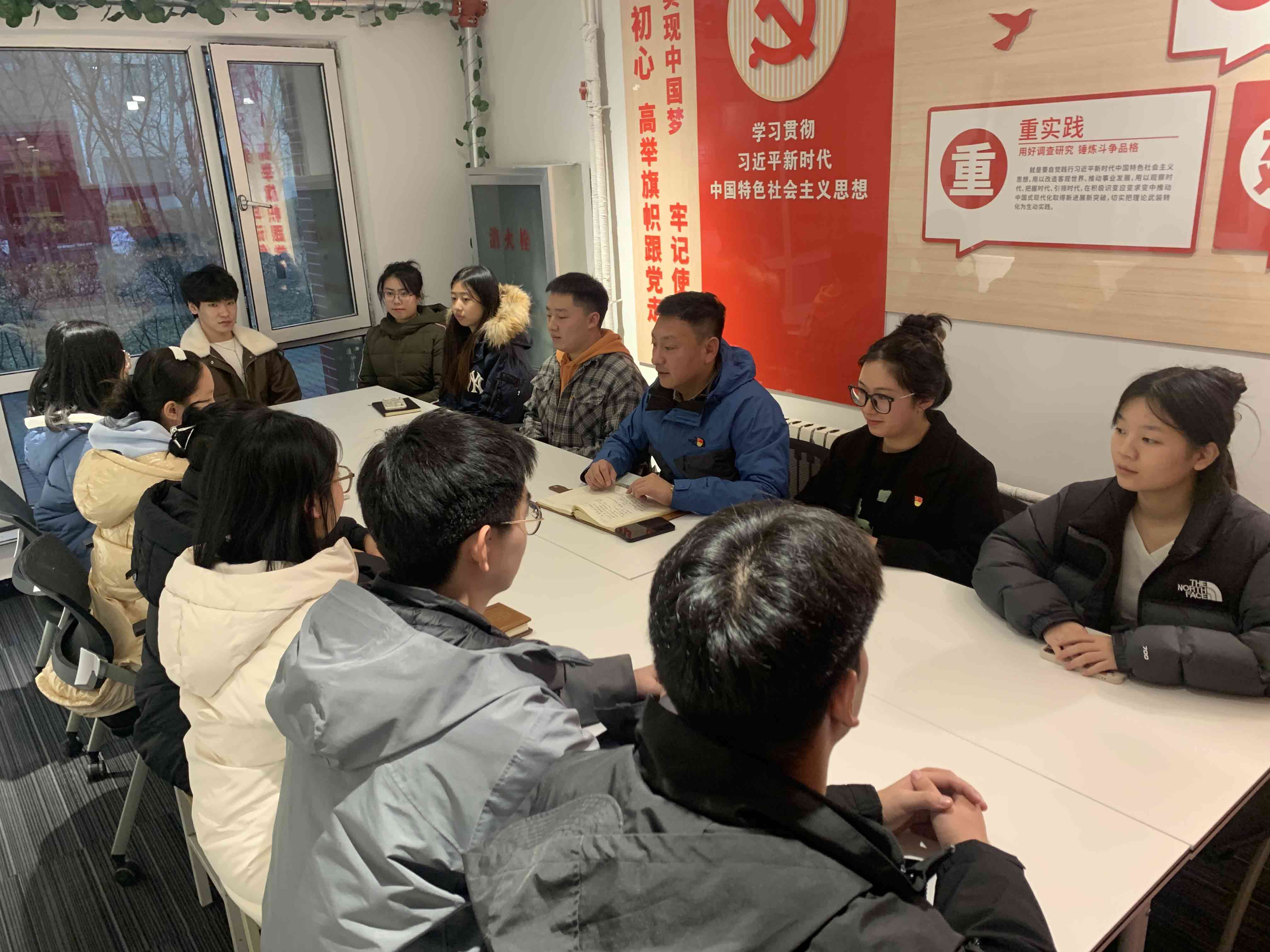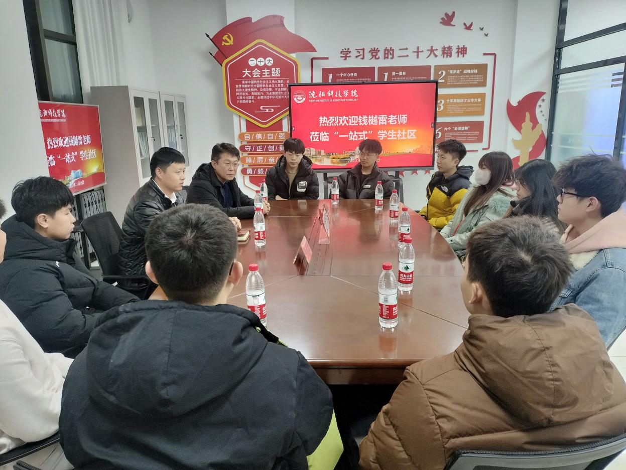 沈阳市委党校钱樾雷老师在学生社区讲述辽宁“新时代六地”和“红色六地”的深刻内涵,与学生代表深入交流