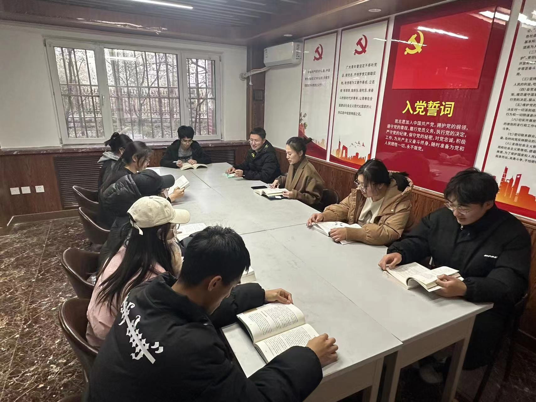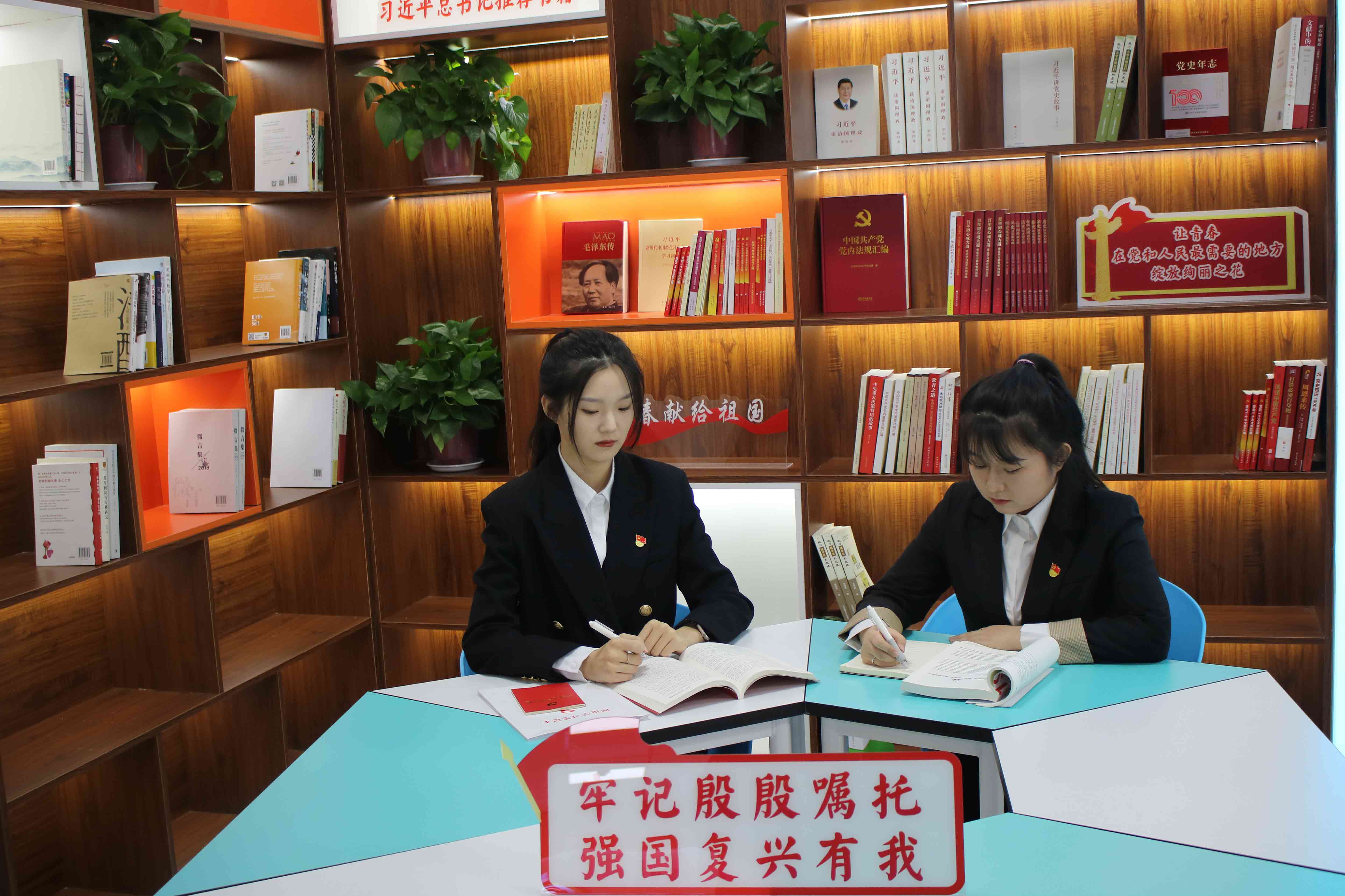 学生党员在学生社区读书角阅读习近平总书记推荐书籍