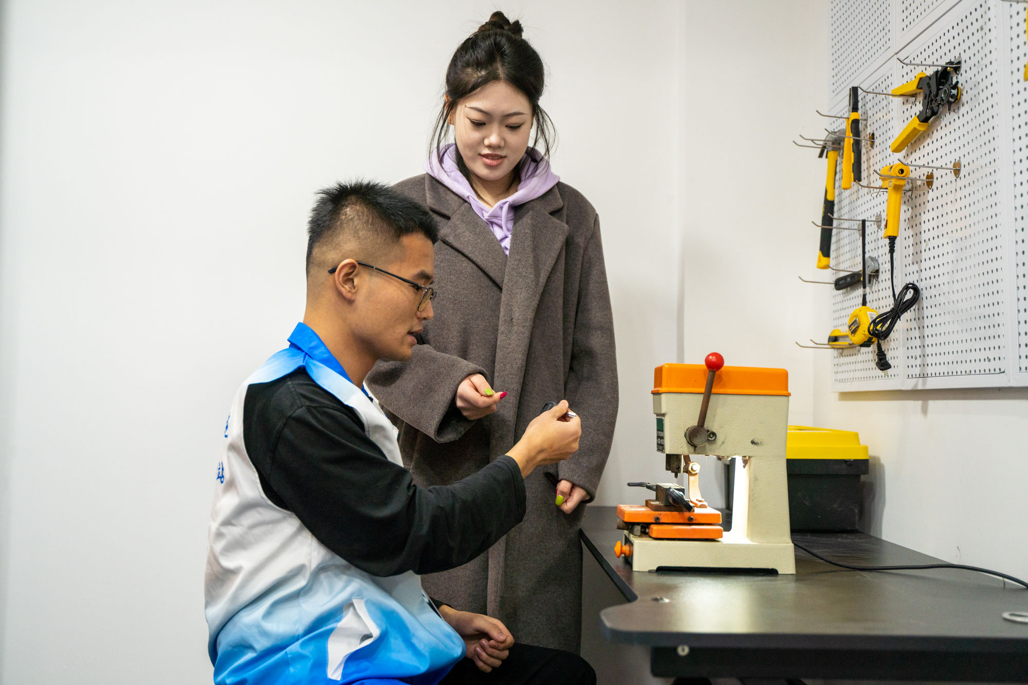星耀社区自我管理委员会学生干部在“笃行工作室”学习劳动技能