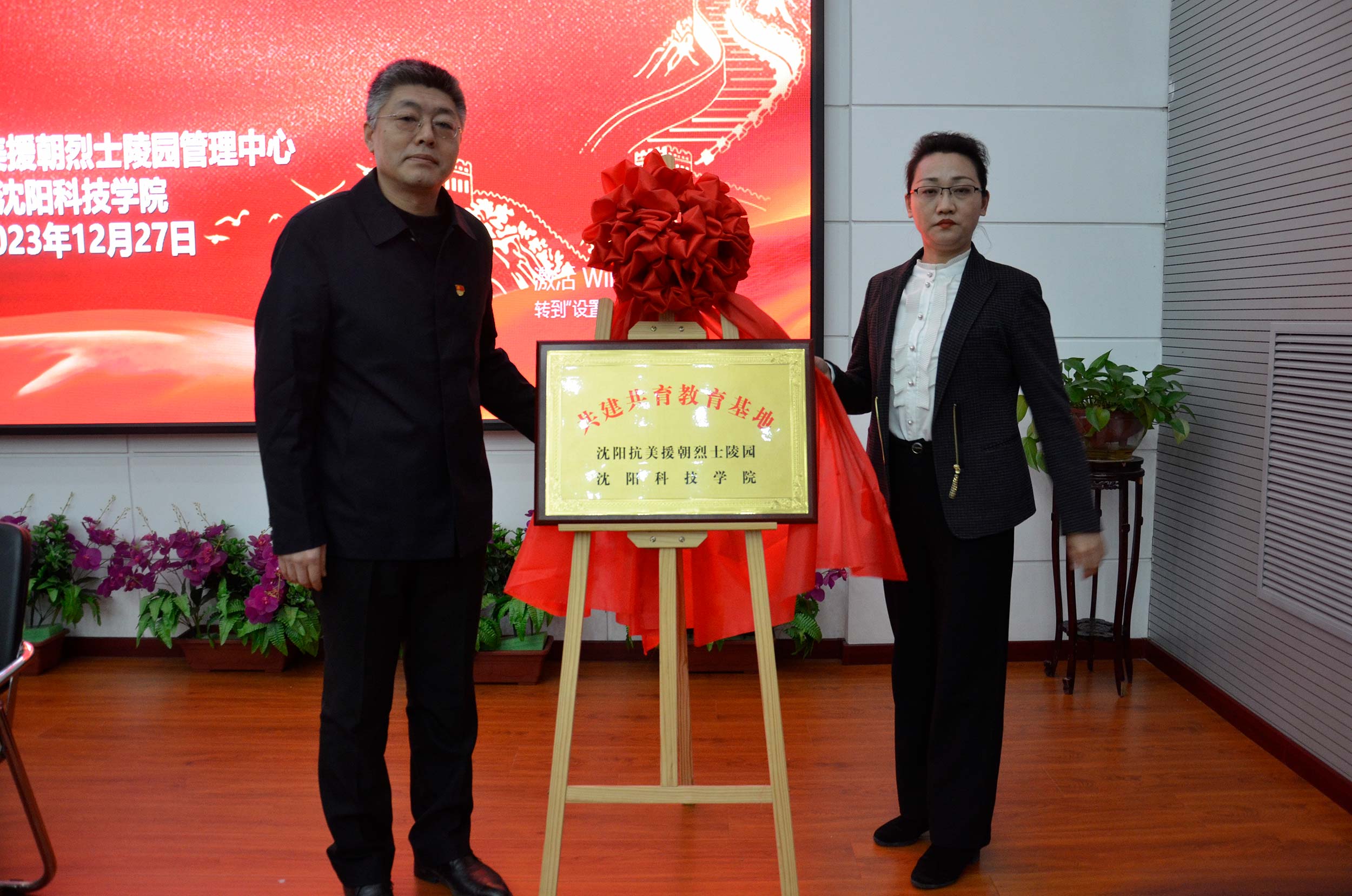 沈阳市抗美援朝烈士陵园管理中心主任吴涛与我校党委书记耿乃国共同为“云博·(中国)手机网页版共建共育教育基地”揭牌。