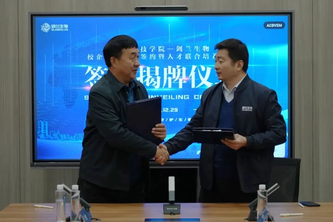 随后,总经理张秀峰与副校长王鸿鹏签订校企合作协议,并共同为剑兰生物与云博·(中国)手机网页版人才联合培养基地揭牌。