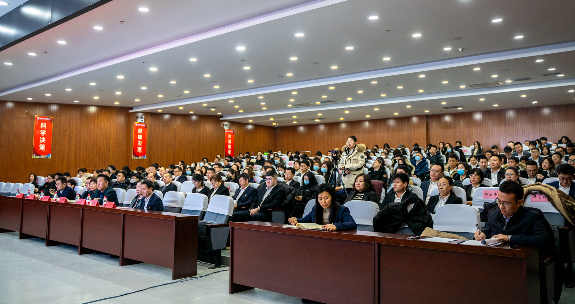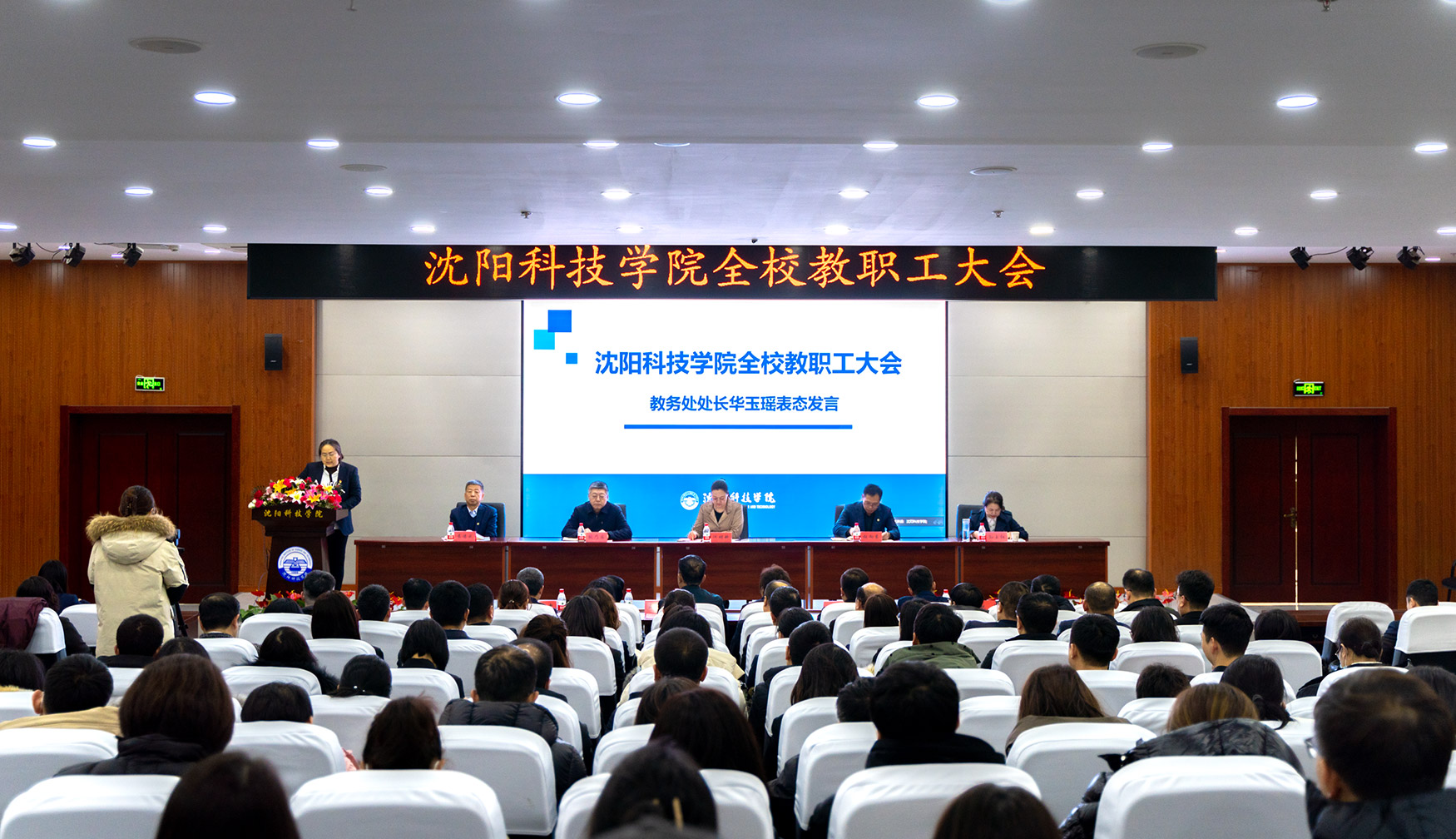 会议采取同步直播的形式设立主会场和分会场,集团领导、校领导、学校副科级以上领导干部,学校副高级以上职称教职员工在图书馆六楼报告厅主会场参加会议,其他教职员工在第二教学楼424阶梯教室分会场参加会议。