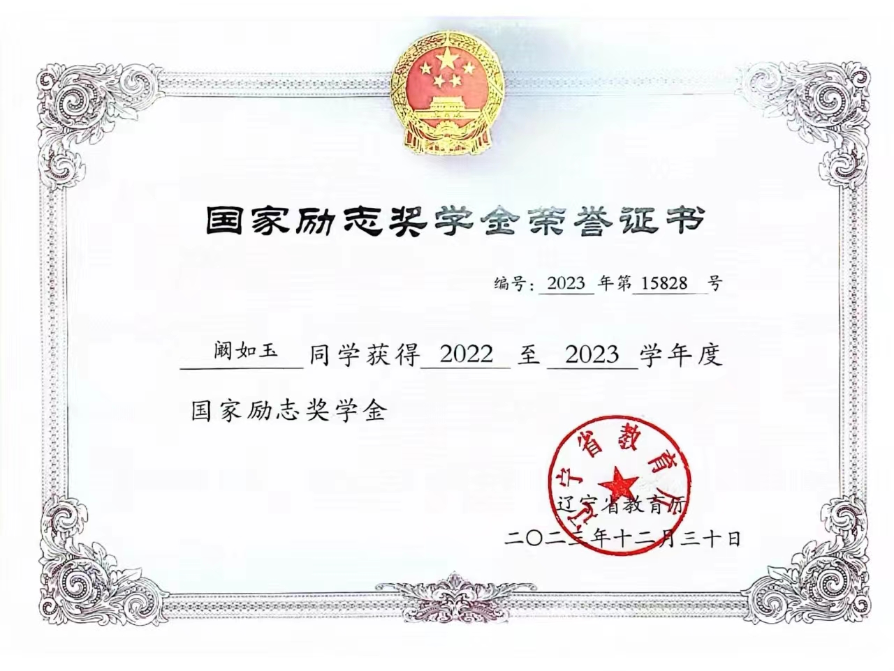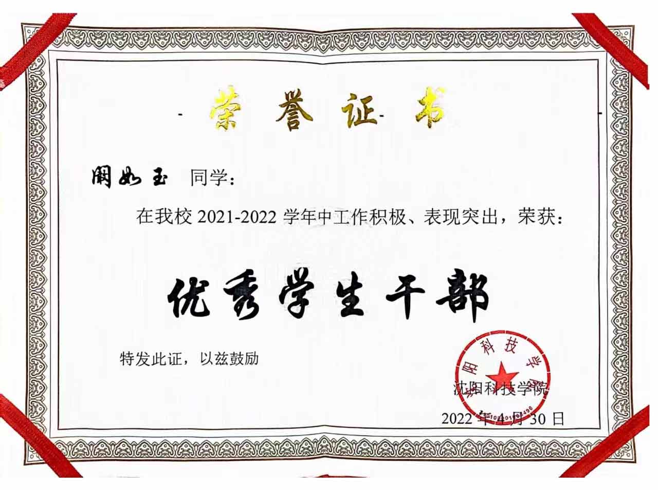 阚如玉自入学以来,积极要求进步,团结同学,始终坚持自强不息、立志成才的信念,始终保持昂扬的斗志和坚韧不拔的作风,以品德至上要求自己,坚定不移地朝着既定的奋斗目标前进。