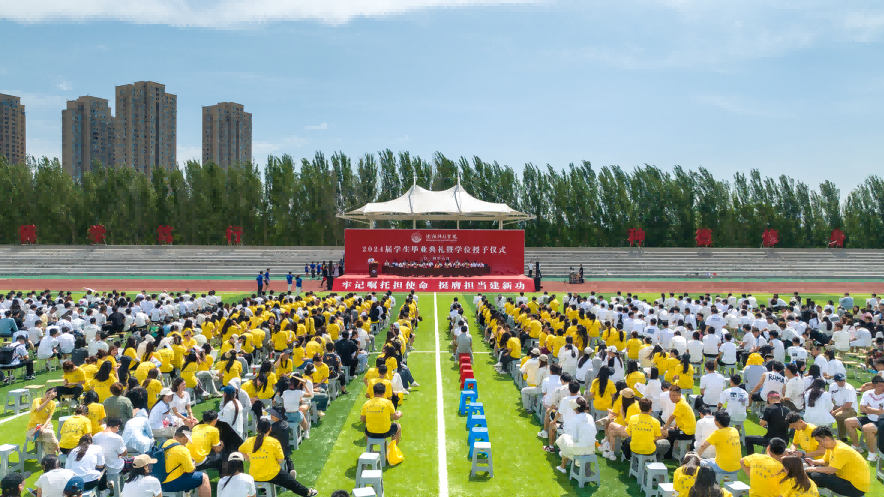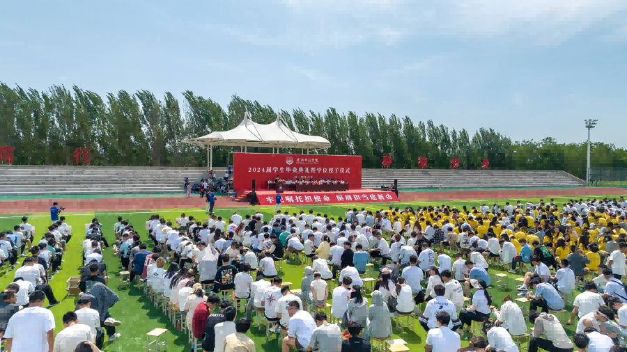 6月20日,2024届学生毕业典礼暨学位授予仪式在北校区风雨体育场圆满落幕。校领导孙玉红、袁德成、张丽影、王鸿鹏、高洪震、郭秀丽、张磊,以及学校相关职能部门负责人、全体辅导员教师出席典礼,共同见证2024届毕业生豪情满怀从“梦想的港湾”再出发,启程奔赴新的征程。仪式由党政办公室主任徐鹏主持。
