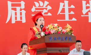 党委副书记、校长、学位评定委员会主席孙玉红以《骊歌高唱向未来 筑梦起航谱新篇》为题发表讲话。她表示,同学们在沈科求学的四年间共同见证了大国崛起和世界风云突变,见证了中国共产党成立100周年和党的二十大胜利召开,见证了神州大地全面建成小康社会。四年间,同学们也共同目睹了学校教学质量的不断提高,教学仪器设备的日臻完善,师资队伍的愈加合理,校园环境的极大改善。临别之际,她提出三点希望与即将踏上新征程的毕业生们共勉,一是能够仰望星空、志存高远,在坚定理想信念中把牢人生航向;二是能够博学笃行、守正创新,在顽强拼搏奋斗中彰显人生价值;三是能够明大德、坚韧自信,在丰富实践阅历中增加人生厚度。她希望所有毕业生们能够在工作和学习生活中,用实际行动诠释沈科校训精神的丰富内涵,让沈科的豪迈、沈科的速度、沈科的激情、沈科的声音传遍四方!