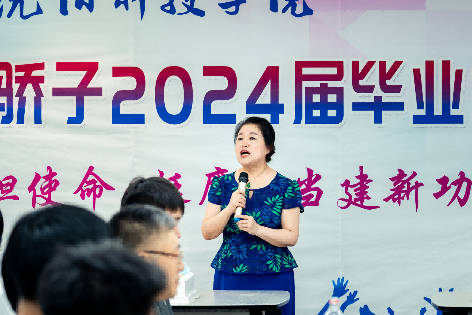信息与控制工程系主任张连浩代表全体教师发言,他向圆满完成学业、即将奔赴新岗位的莘莘学子们表示热烈祝贺。他寄予毕业生们,一要牢记报效祖国、振兴中华历史重任;二要堂堂正正做人,踏踏实实做事;三要强化社会适应能力,积累平台资源与社会阅历;四要发挥沈科学子永不言败、拼搏到底的精神,乘风破浪,逐梦远航!