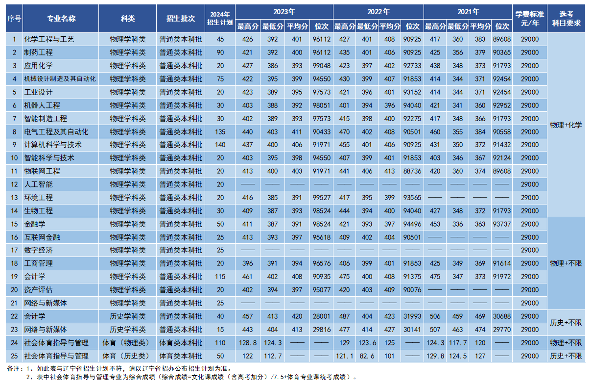 3.院校志愿及录取:我校在辽宁省普通类、体育类本科批实行平行志愿投档录取方式,在其它省市按照当地招生主管部门规定录取方式进行录取。