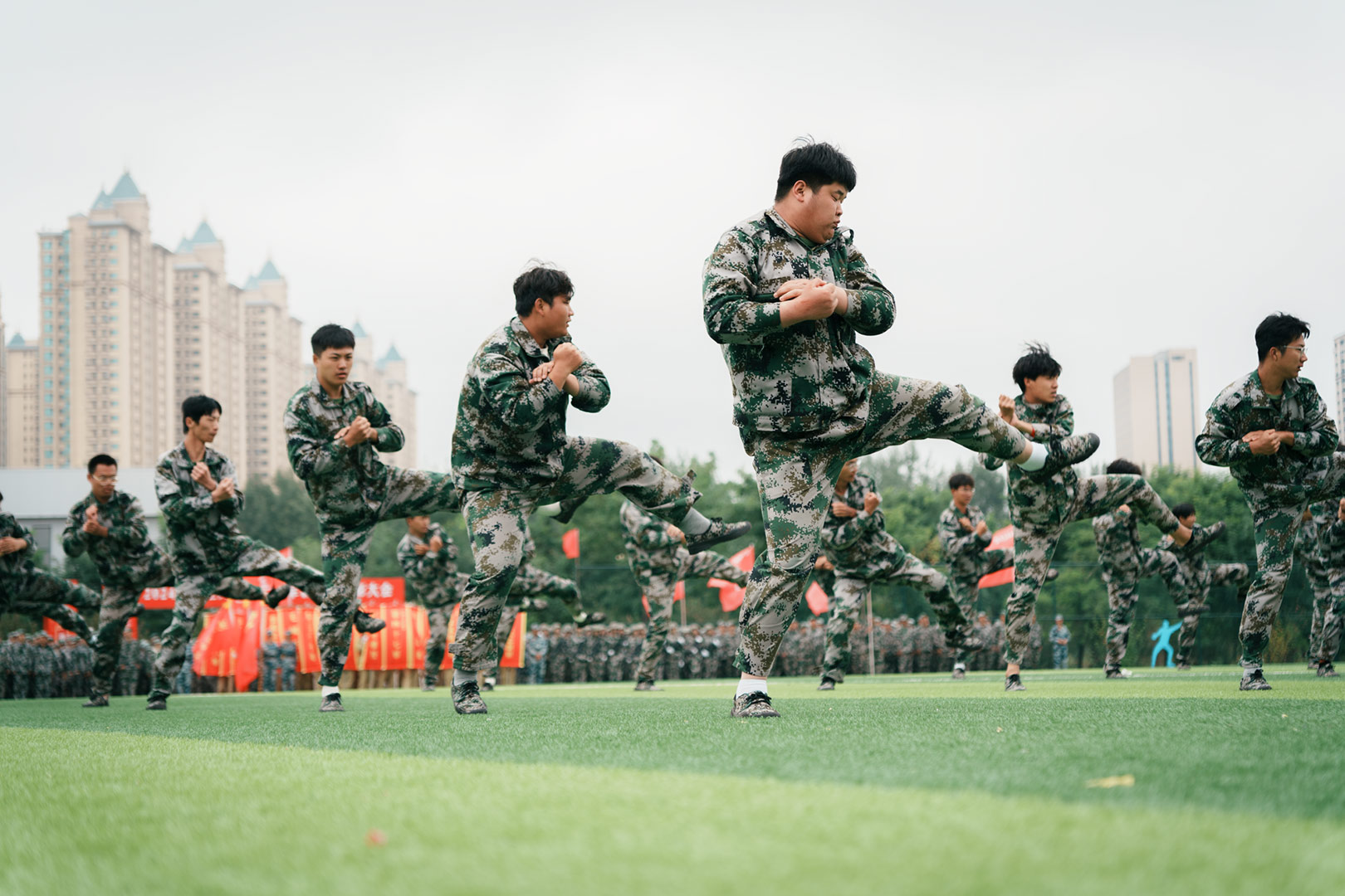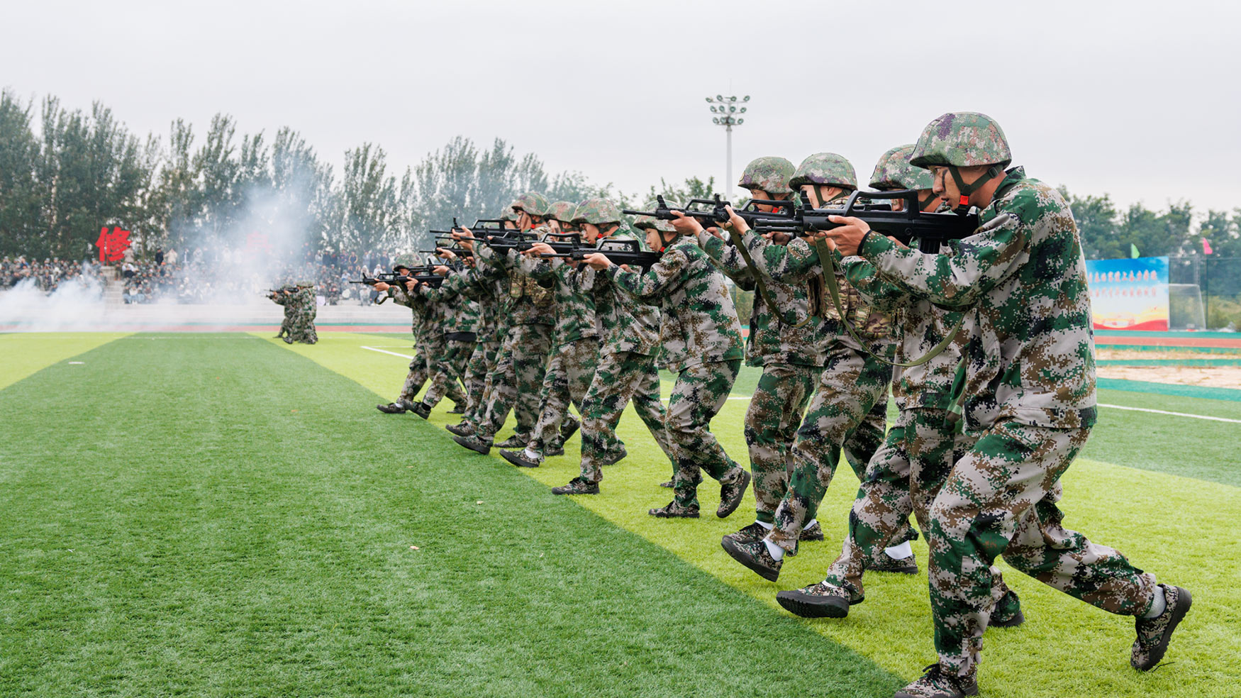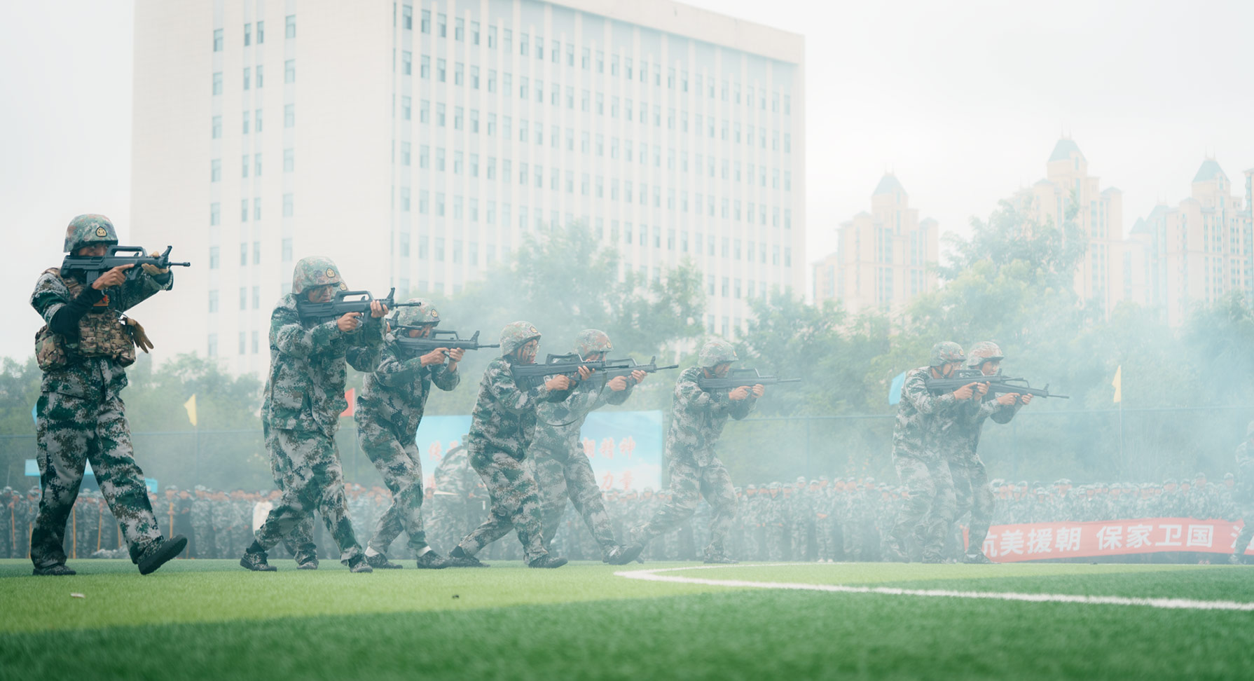 本次军训是我校首次将抗美援朝精神育人特色融入到开学第一课军事训练当中,在各科目汇报表演中,全体参训学员以伟大的抗美援朝精神为引领,进行了团体操、匕首操、擒敌拳、刺杀操、倒功格斗、战术演习等训练科目的表演。他们精神抖擞,英姿勃发,动作果断刚劲、整齐,充分展现了入学以来的训练成果和新时代大学生的蓬勃朝气,赢得现场师生的阵阵掌声和一致好评。
