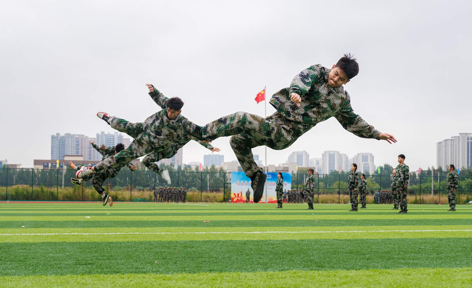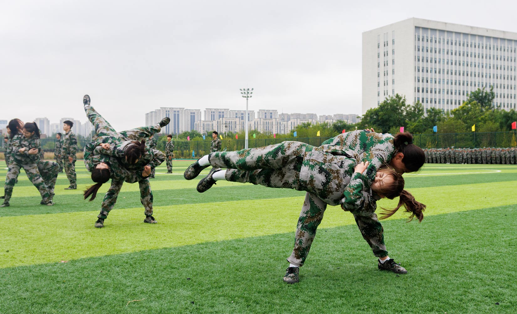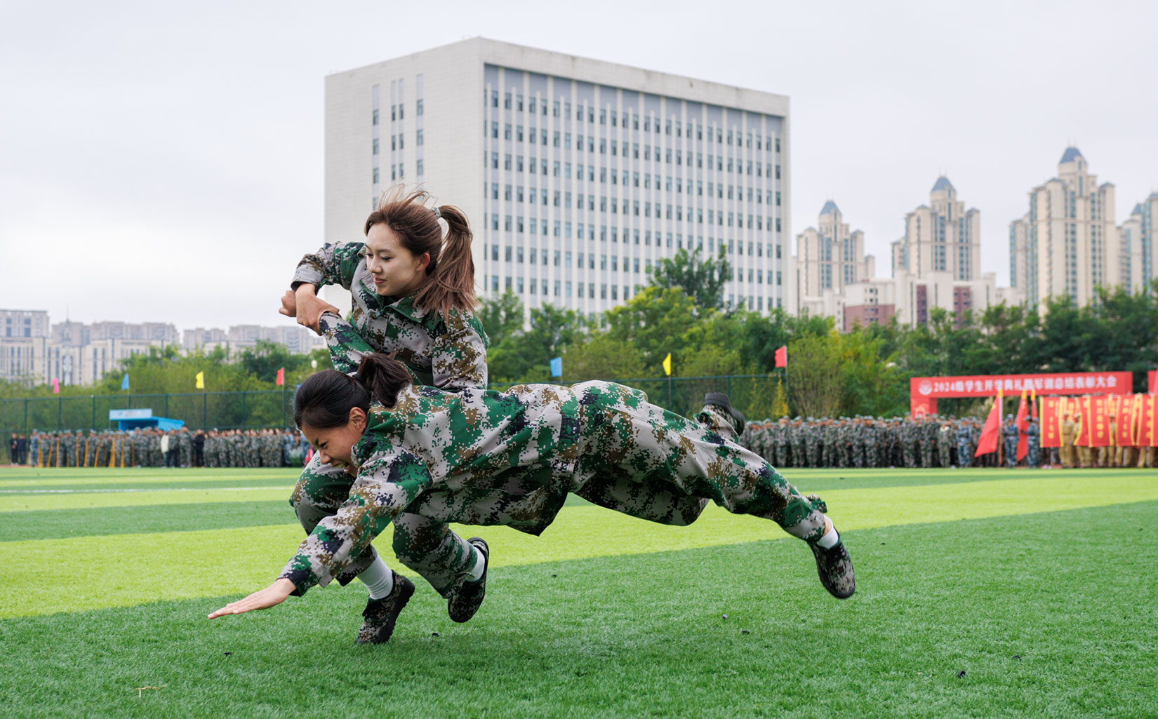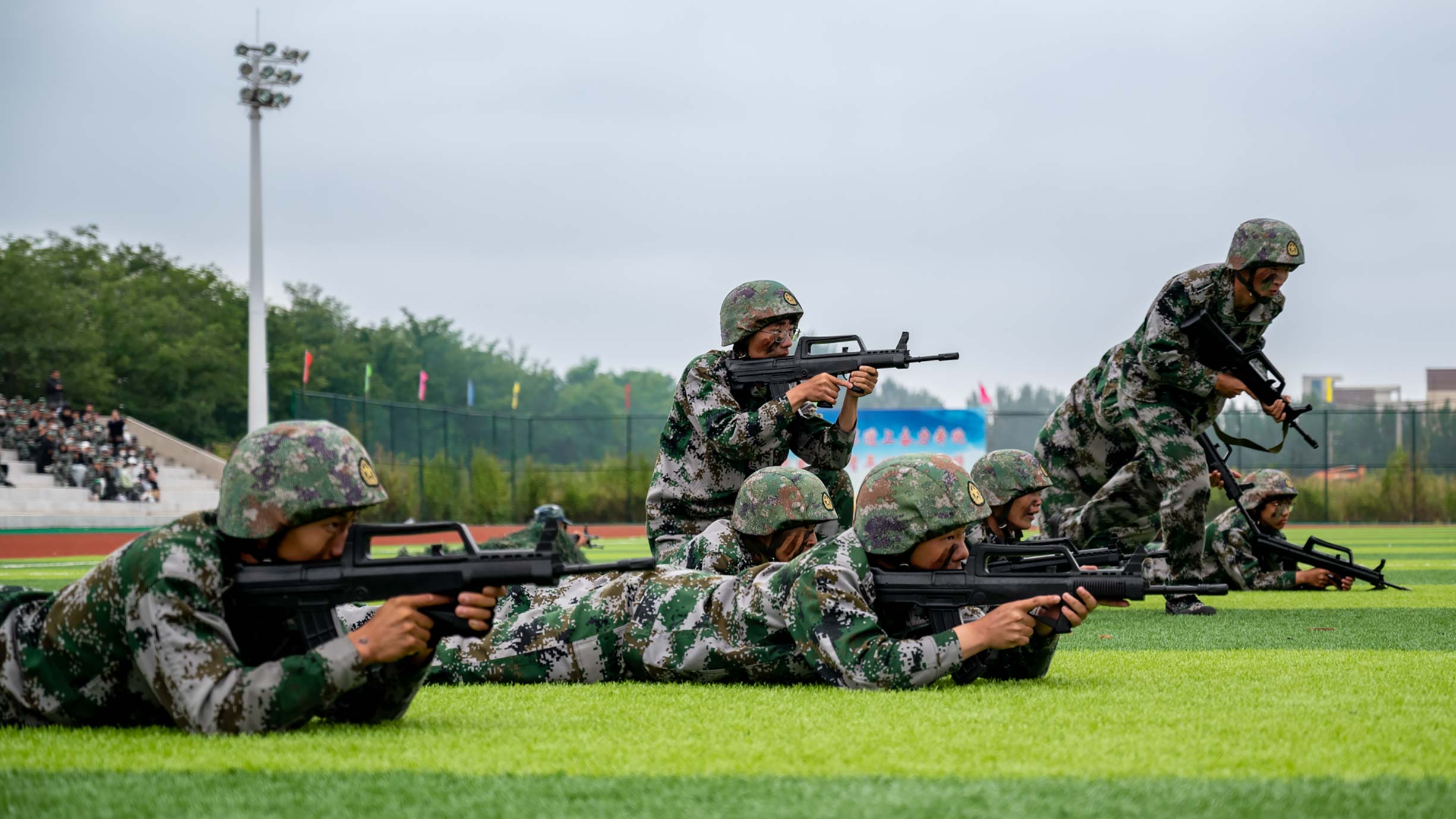 本次军训是我校首次将抗美援朝精神育人特色融入到开学第一课军事训练当中,在各科目汇报表演中,全体参训学员以伟大的抗美援朝精神为引领,进行了团体操、匕首操、擒敌拳、刺杀操、倒功格斗、战术演习等训练科目的表演。他们精神抖擞,英姿勃发,动作果断刚劲、整齐,充分展现了入学以来的训练成果和新时代大学生的蓬勃朝气,赢得现场师生的阵阵掌声和一致好评。