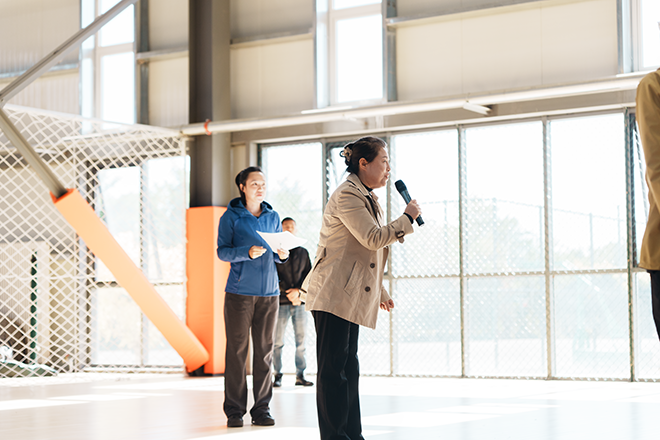 党委副书记、校长孙玉红宣布教职工篮球赛开幕