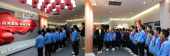 在学校的精心组织下,学生们首先参观了抗美援朝精神育人实践基地。一幅幅珍贵的历史照片、一件件饱含故事的物件,让学生们仿佛穿越时空,走进了那段烽火岁月。他们认真聆听讲解员的介绍,眼神中充满了对革命先辈的敬仰和抗美援朝战争历史的敬畏。学生们积极互动,纷纷表示要以革命先辈为榜样,刻苦学习、健康成长,为实现中华民族伟大复兴的中国梦贡献自己的力量。