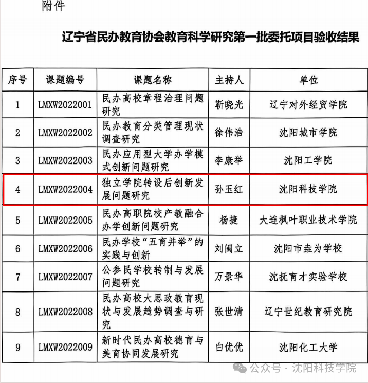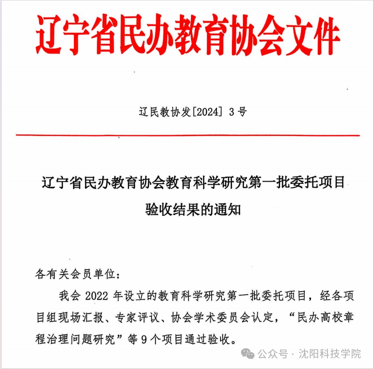近日,辽宁省民办教育协会发布了《辽宁省民办教育协会教育科学研究第一批委托项目验收结果的通知》(辽民教协发[2024]3号),我校党委副书记、校长孙玉红完成了辽宁省民办教育协会第一批委托项目验收结题工作。这一成就标志着云博·(中国)手机网页版在民办教育领域的研究和实践达到了一个新的里程碑。