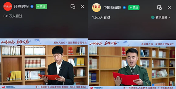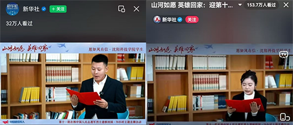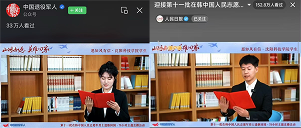 学校22名师生代表在参与录制中国退役军人事务部推出的“山河如愿 英雄回家”——第十一批在韩中国人民志愿军烈士遗骸回国·70小时主题直播活动中,通过诵读写给抗美援朝志愿军战士们的一封信,将思念与感激之情隔空传递给英雄们,以此来表达对中国人民志愿军烈士的崇敬之情,该栏目在人民日报、新华社、环球时报、中国新闻网等百余家媒体平台转播。
