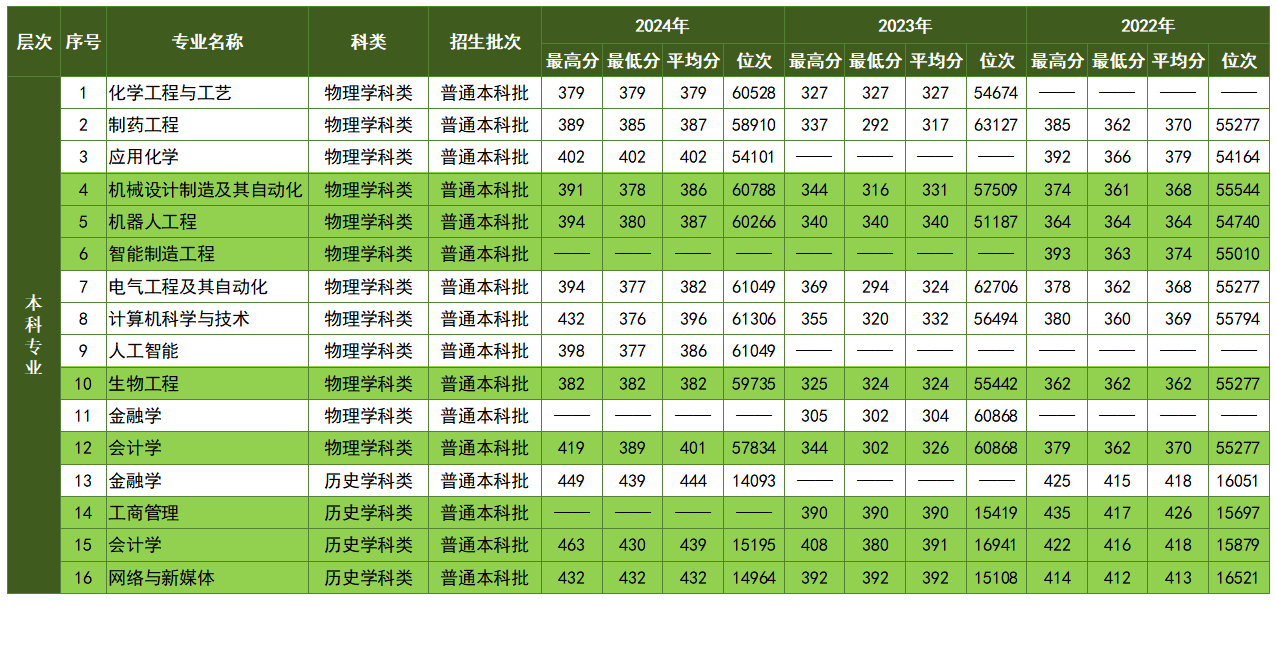 本科专业近三年吉林省录取分数线