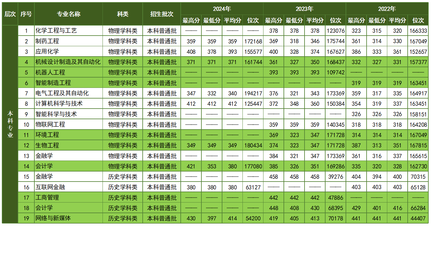 本科专业近三年广西壮族自治区录取分数线