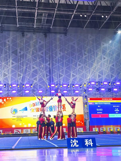 我校技巧啦啦操队在全国啦啦操锦标赛中首夺双冠,载誉而归!