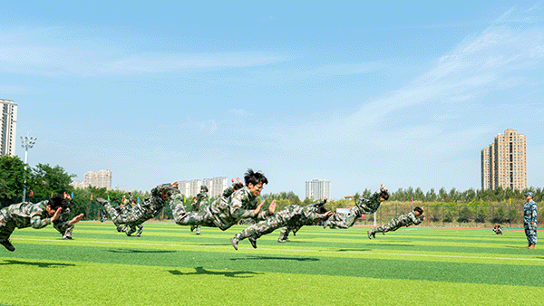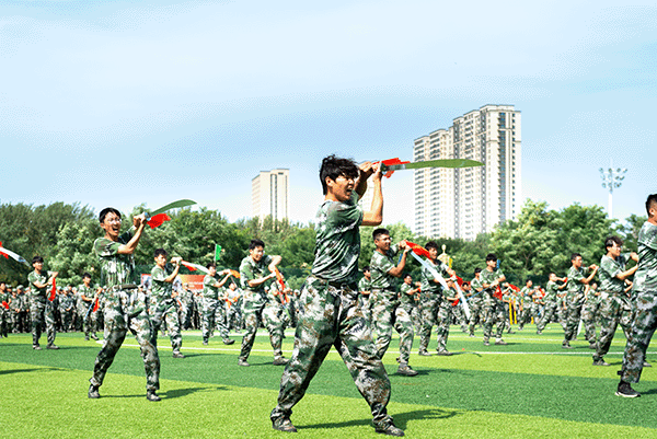 在各科目汇报表演中,全体参训学员以伟大抗战精神和伟大抗美援朝精神为引领,全面融入思想政治教育和爱国主义教育。刺杀操、匕首操、擒敌拳、破风八刀、倒功格斗等表演刚劲有力,气势如虹,胜利荣光字形、图案变换、破风八刀、战术演练与战场救护等特色项目惊艳全场,充分展现了入学以来的训练成果和新时代大学生的蓬勃朝气。