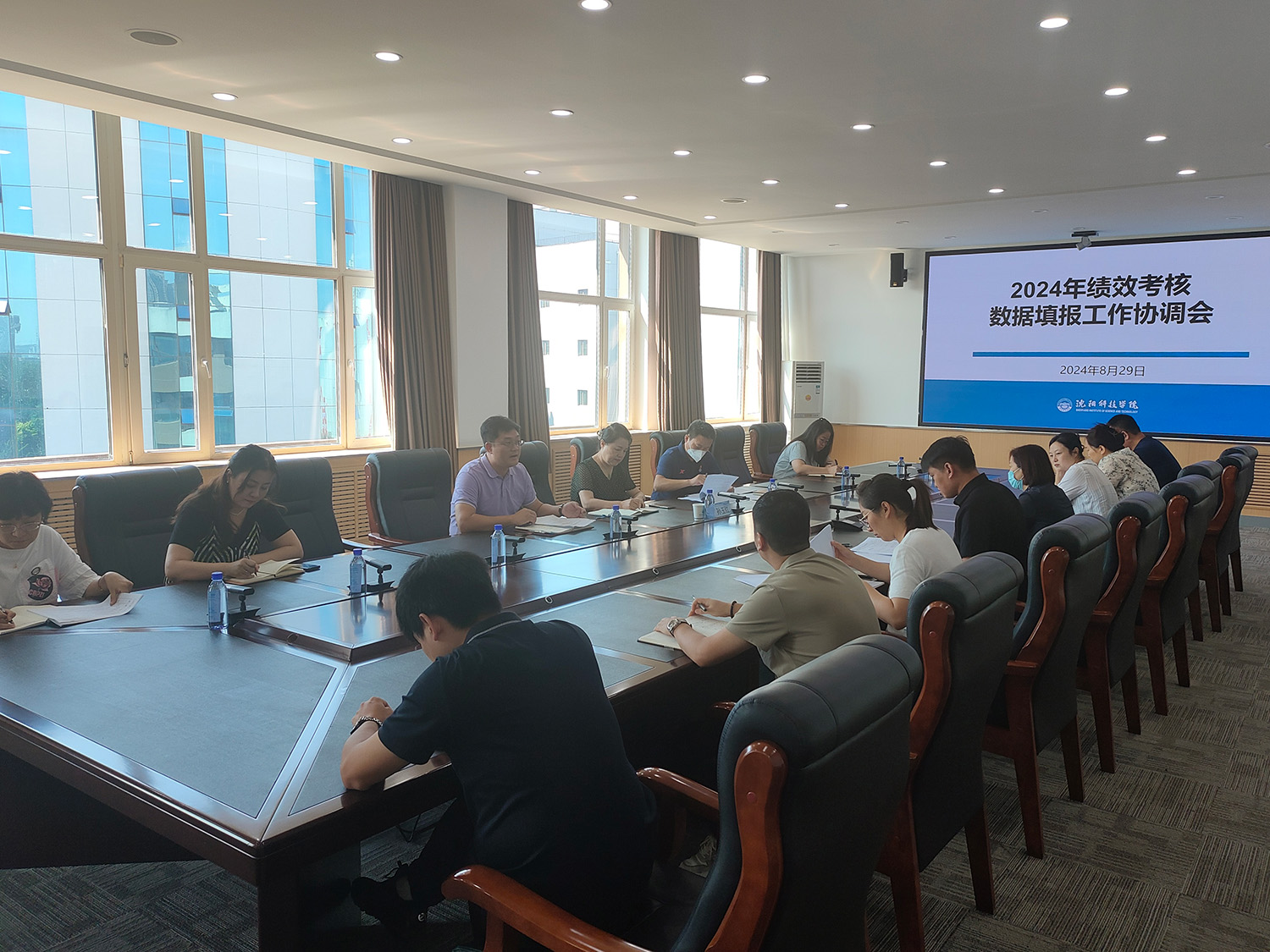 8月29日上午10时,学校在第二教学楼505会议室召开2024年绩效考核数据填报工作协调会,深入贯彻落实省教育厅2024年绩效考核数据填报工作要求,安排部署具体工作任务。校领导孙玉红、肖士中参加会议。会议由党政办公室主任徐鹏主持。